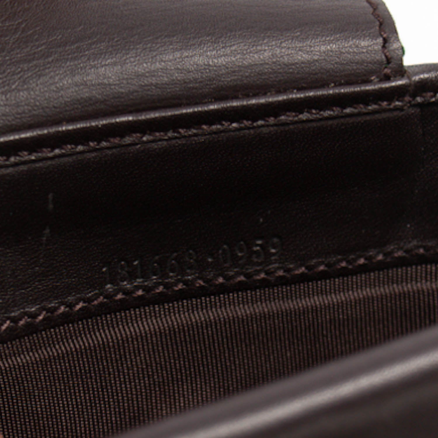 Details: GG Supreme Grey and Brown Coated Canvas / Red and Green Web Accent Details / Brown Leather Lining / Three Bill Compartments / Seven Card Slots / Push Button Pocket / Push Button Closure at Front