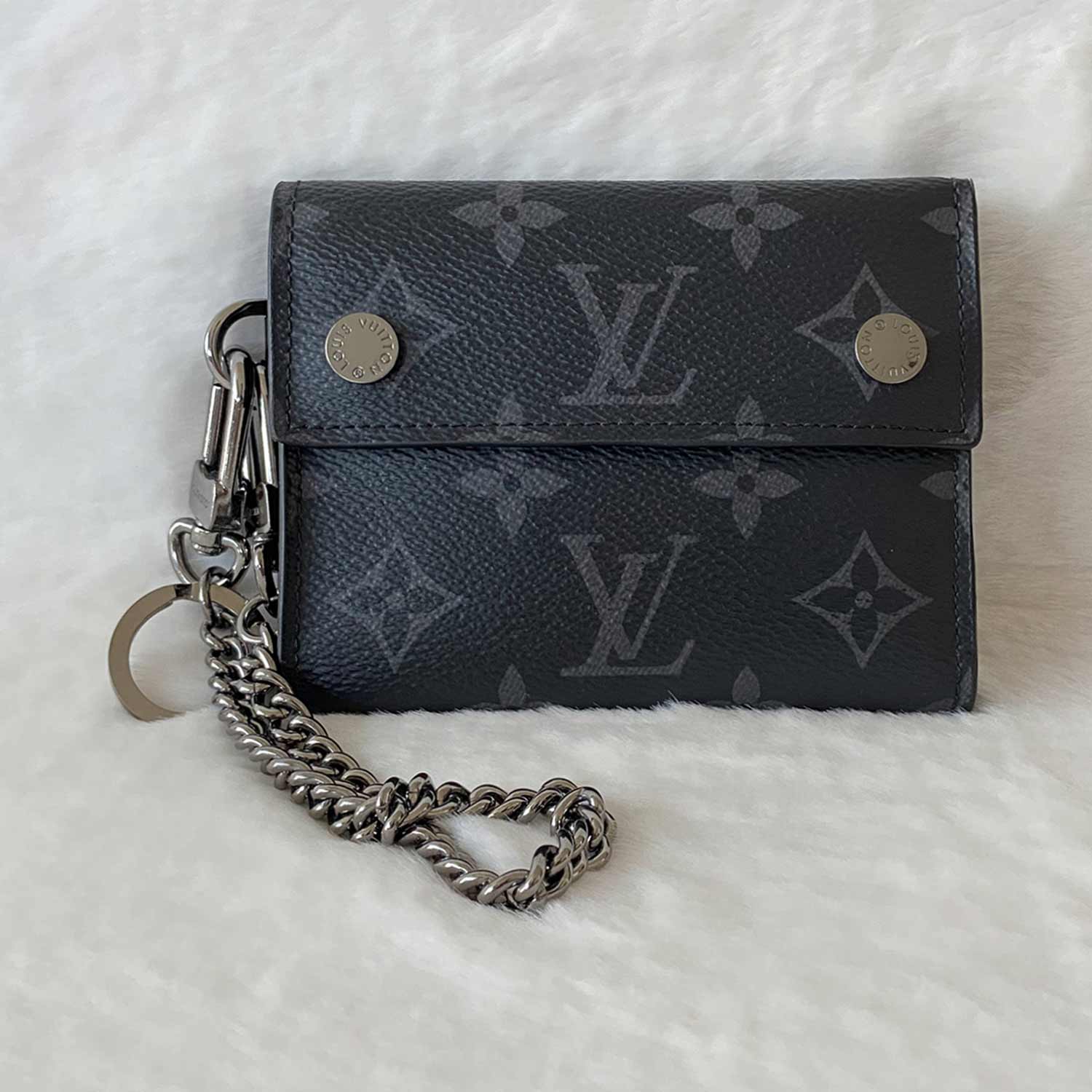 Description: Authentic Pre-Owned Louis Vuitton Monogram Eclipse Rivets Chain Wallet