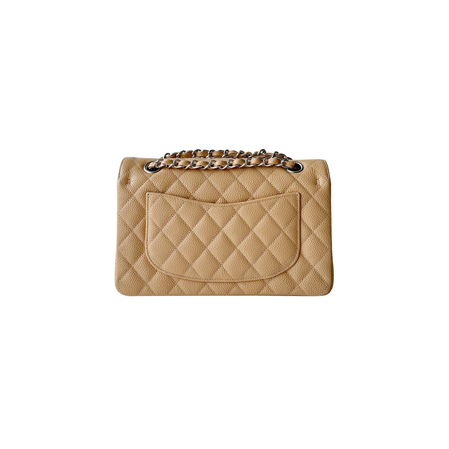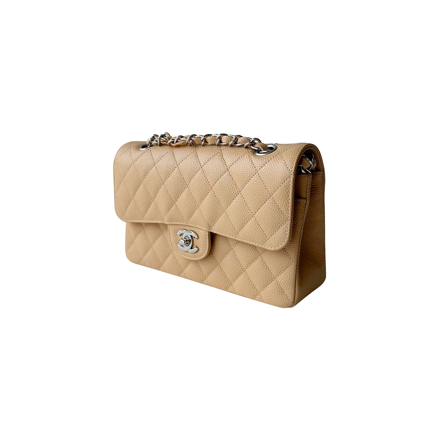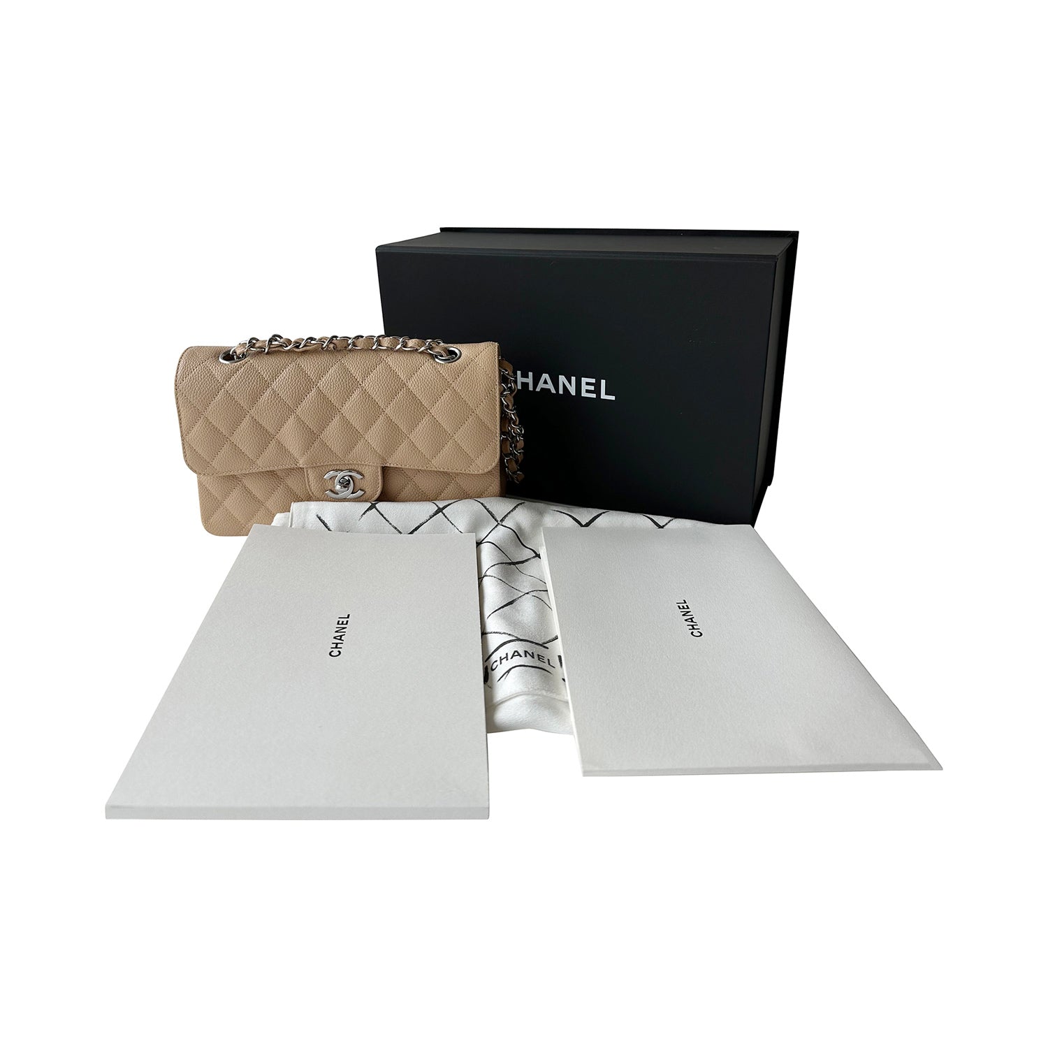 Description: Authentic New Chanel Classic Small Double Flap in Neutral Grained Calfskin Leather