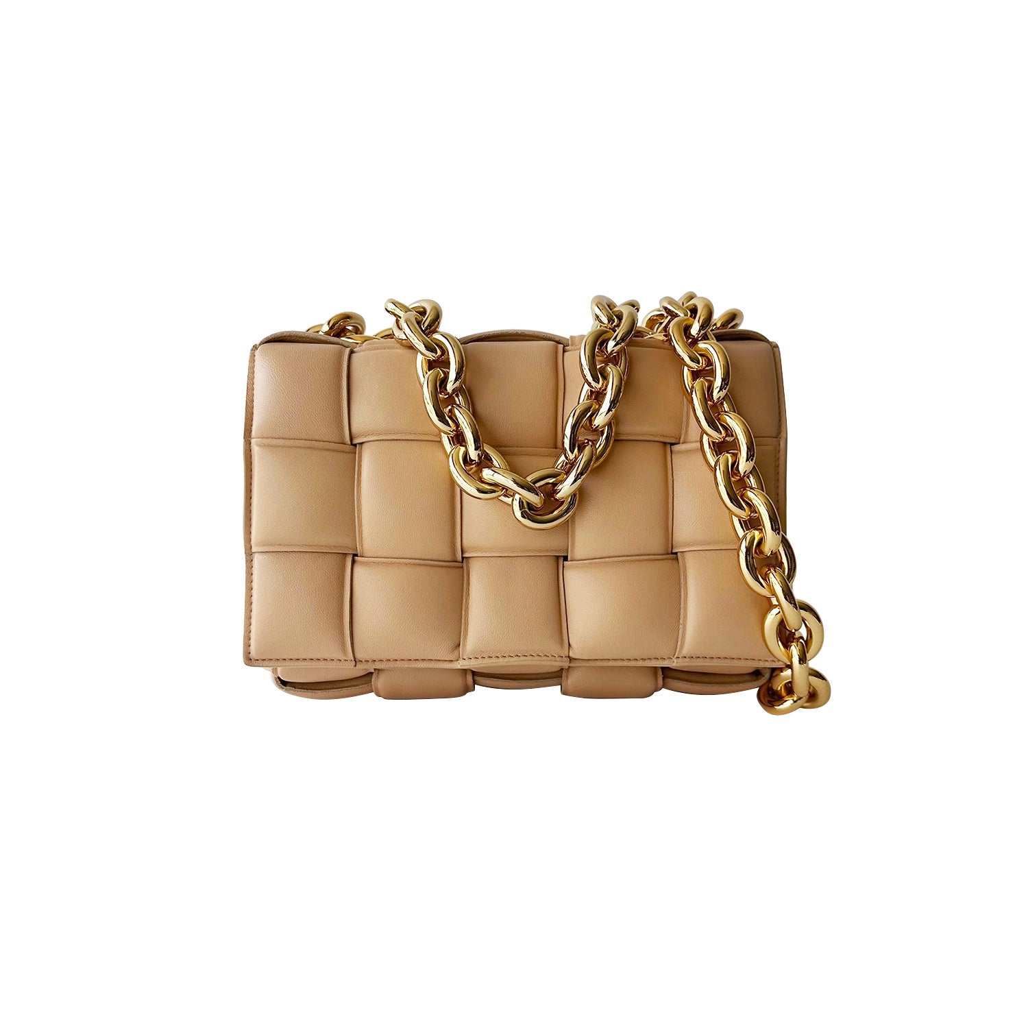 Description: Authentic Pre-Owned Bottega Veneta Casette Chain-Embelished Padded Intrecciato Leather Shoulder Bag