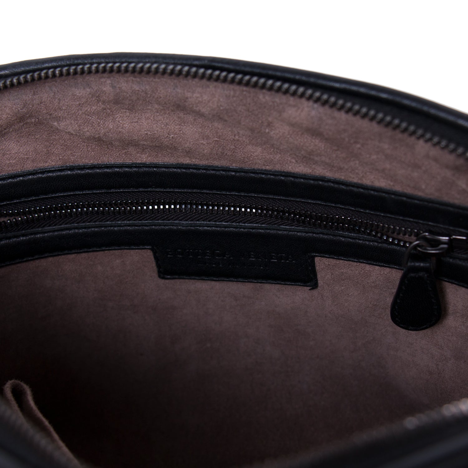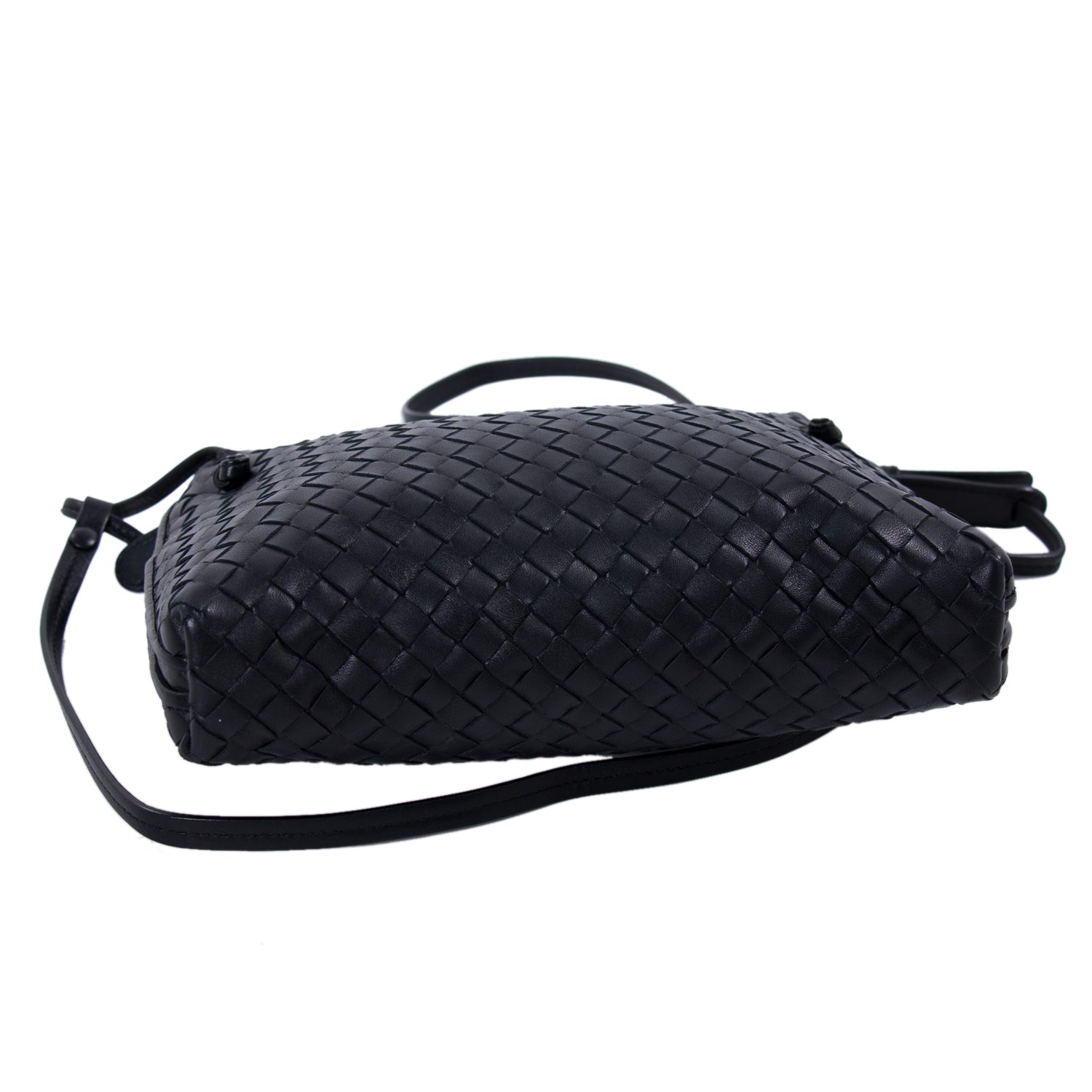 Details: Black Intrecciato Leather / Black Metal Hardware / Long Adjustable Shoulder Strap / Brown Suede Lining / Zipper and Flat Pocket at Interior / Dual-Way Zipper Closure at Top