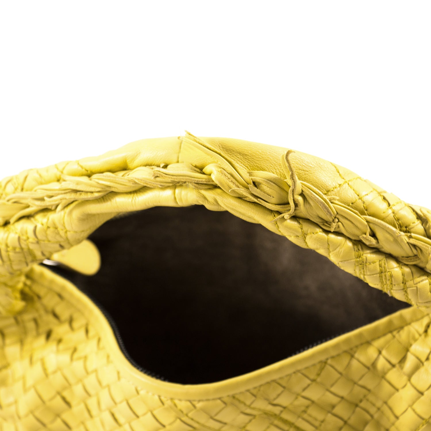 Description: Authentic Pre-Owned Bottega Veneta Yellow Intrecciato Small Veneta Hobo Bag