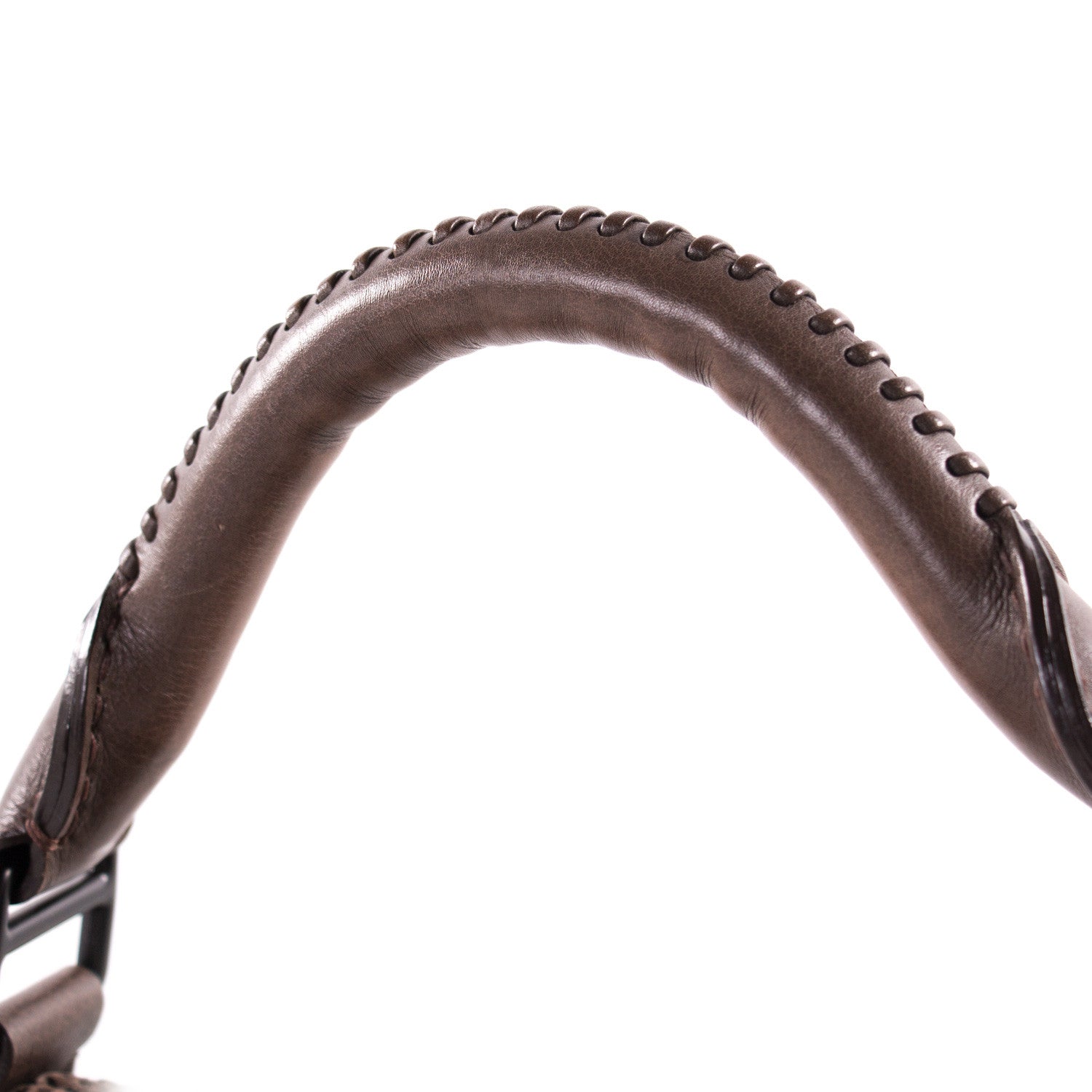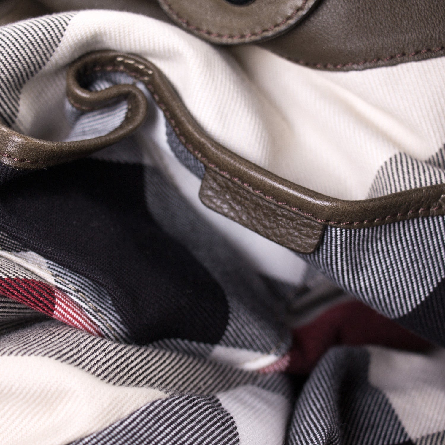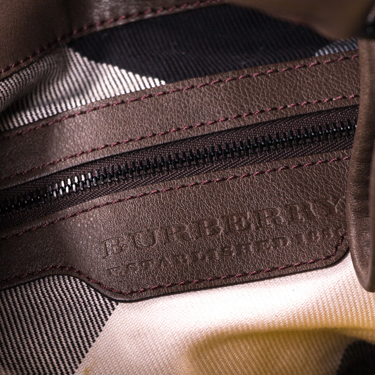 Details: Dark Chocolate Perforated Suede / Black Hardware / Single Rolled Handle / Brown Leather Trim / Super Nova Check Canvas Lining / Three Interior Pockets, One With Zip Closure / Magnetic Snap Closure at Top
