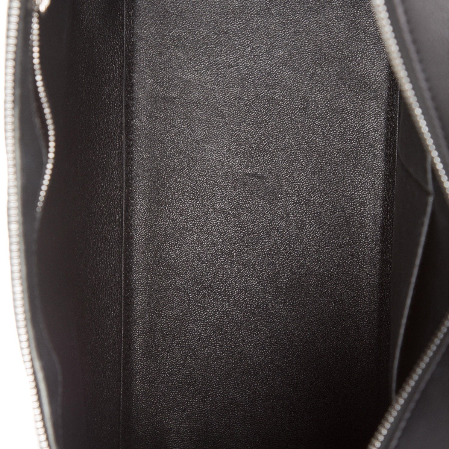 Details: Black and Beige Calf Leather / Silver Tone Hardware / Single Flat Shoulder Strap / Single Back Pocket With Snap Closure / Black Leather Interior Lining / Dual Pockets at Interior Walls / Single Interior Zipper Pocket / Zip Closure at Top
