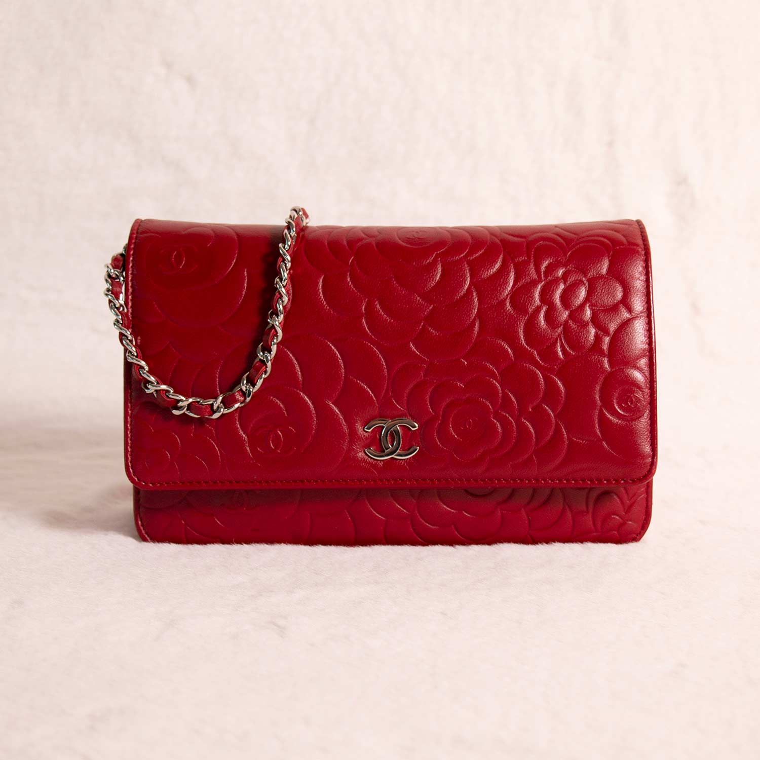 Description: Authentic Pre-Owned Chanel Camelia Flower Wallet on Chain