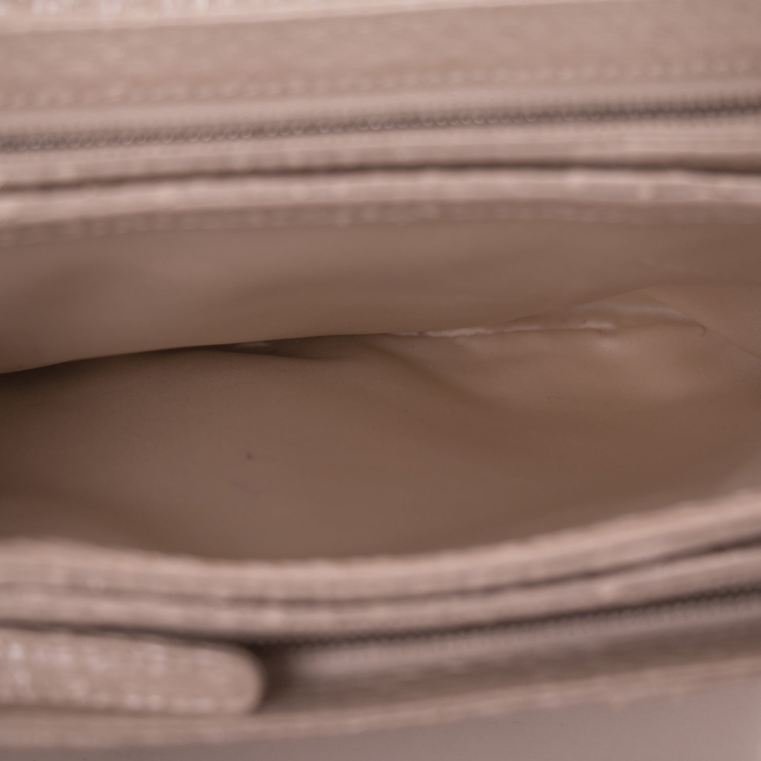 Details: Ivory Python Skin / Silver-Tone Hardware / Dual Chain-Link Leather Shoulder Straps / Exterior Pocket at Back / Ivory Satin Lining / Three Compartments, Two with Zipper Closure / Flat Pocket / Flap Closure at Front with Turn-Lock
