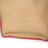 Details: Khaki Pebbled Calfskin Leather / Silver-Tone Hardware / Dual Rolled Handles / Exterior Zip Pocket At Front / Protective Studs At Base / Red Suede Lining At Interior / Single Zip Pocket At Wall / Pull Through Closure At Top