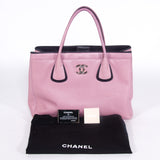 Details: Pink Lambskin Leather / Silver-Tone Hardware / Dual Top Rolled Handles / Silver-Tone CC Logo Embellishment At Front / Dual Pockets At Exterior With Magnetic Snap Closures / Grey Woven Lining / Three Large Compartment / One Removable Compartment / Dual Pockets At Interior Walls With Zip Closure / Magnetic Snap Closure At Top