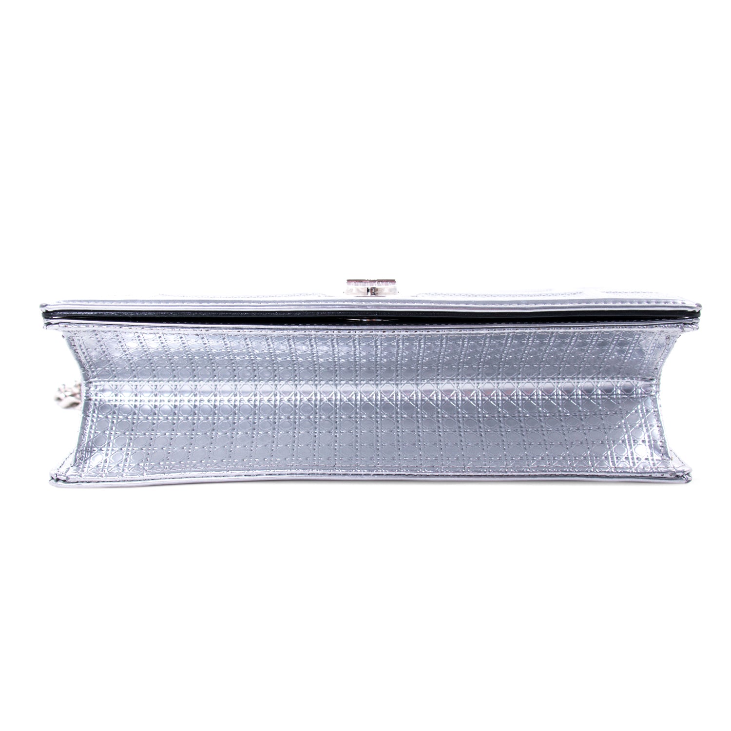 Details: Silver Metallic Leather / Silver-Tone Hardware / Adjustable Shoulder Strap / Black Leather Lining at Interior / One Zipper Pocket and One Slit Pocket / Push-Lock Closure at Front Flap
