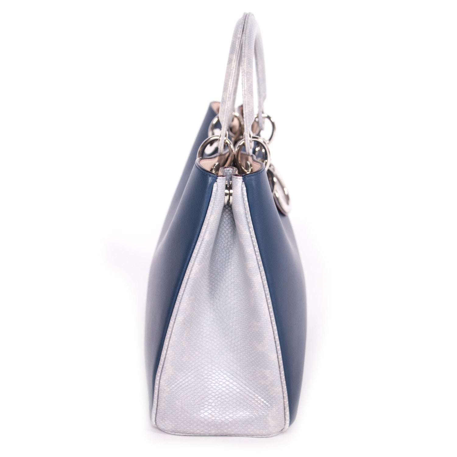 Description: Authentic Christian Dior Blue Leather And Karung Diorissimo
