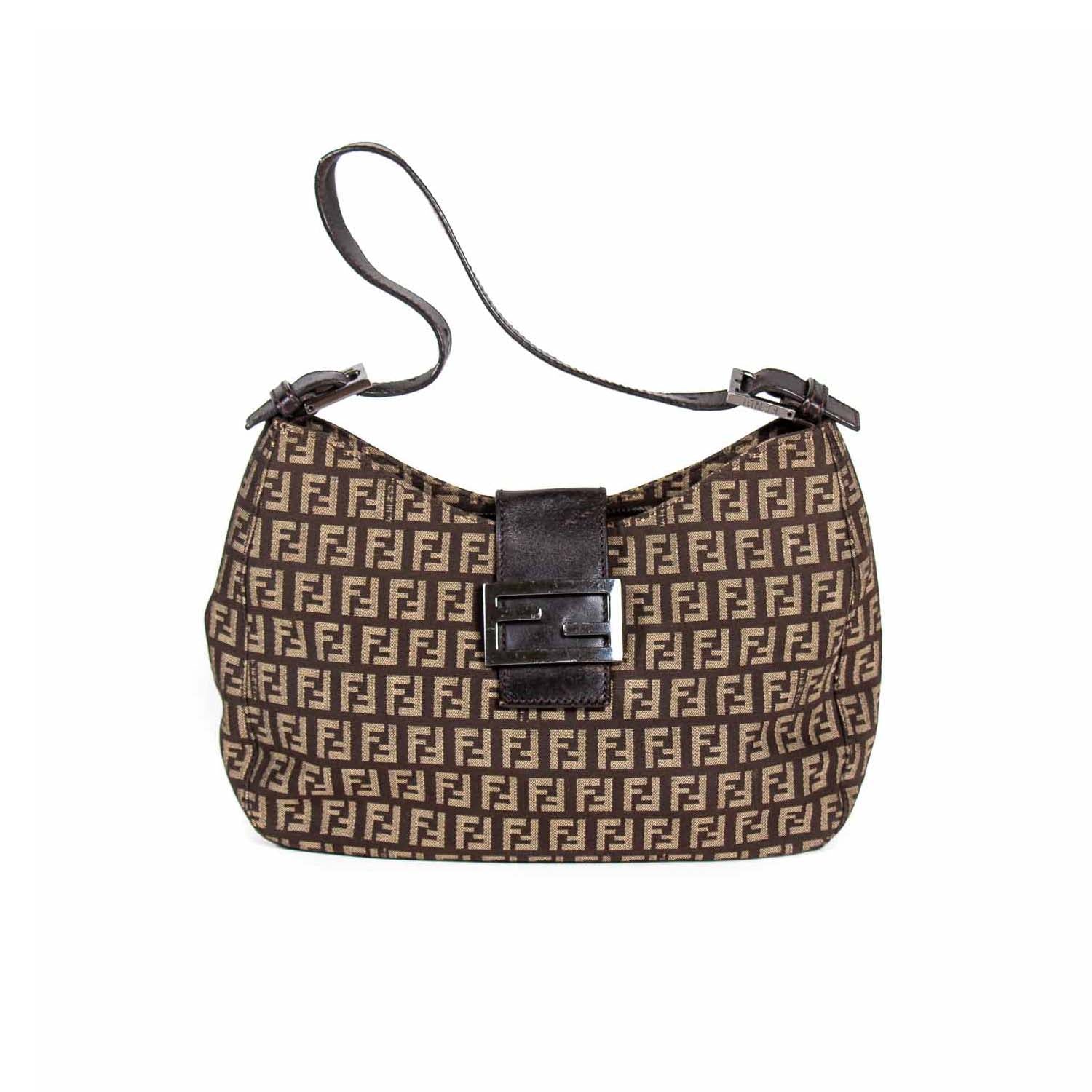 Details: Beige and Brown Zucca Canvas / Silver-Tone Hardware / Brown Leather Lining / Adjustable Shoulder Strap / Brown Woven Interior Lining / Single Pocket At Interior Wall / Snap Closure At Front