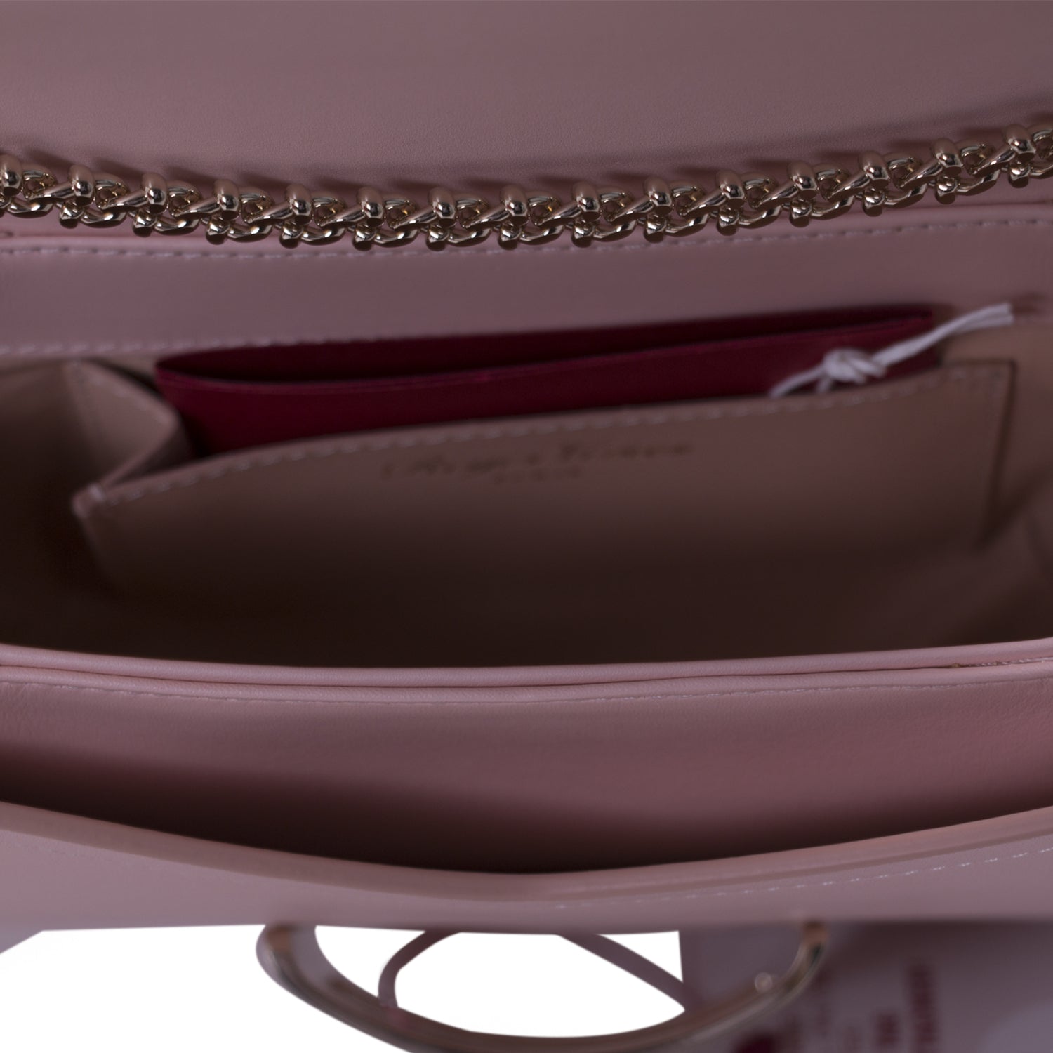 Details: Light Pink Leather / Gold-Tone Hardware / Adjustable Chain and Leathert Shoulder Strap / Interior Leather Lining / Internal Slot Pockets / Magnetic Slide-Tab Fastening