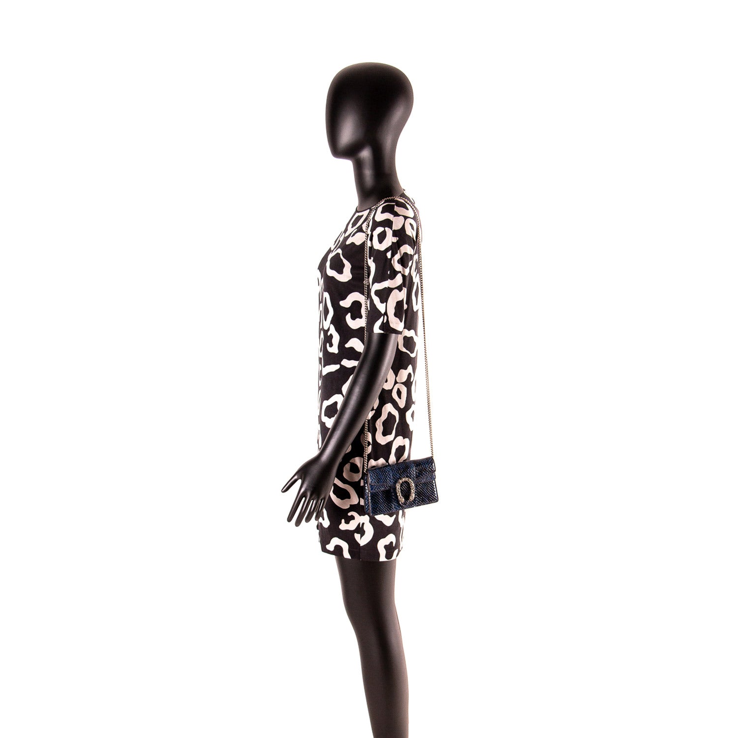 Details: Navy Blue Snake Skin / Silver-Tone Hardware / Tiger Head Embellishment with Swarovski Crystal Stones / Single Compartment Made of Cyan Leather / Attached Key Ring / Pin Closure