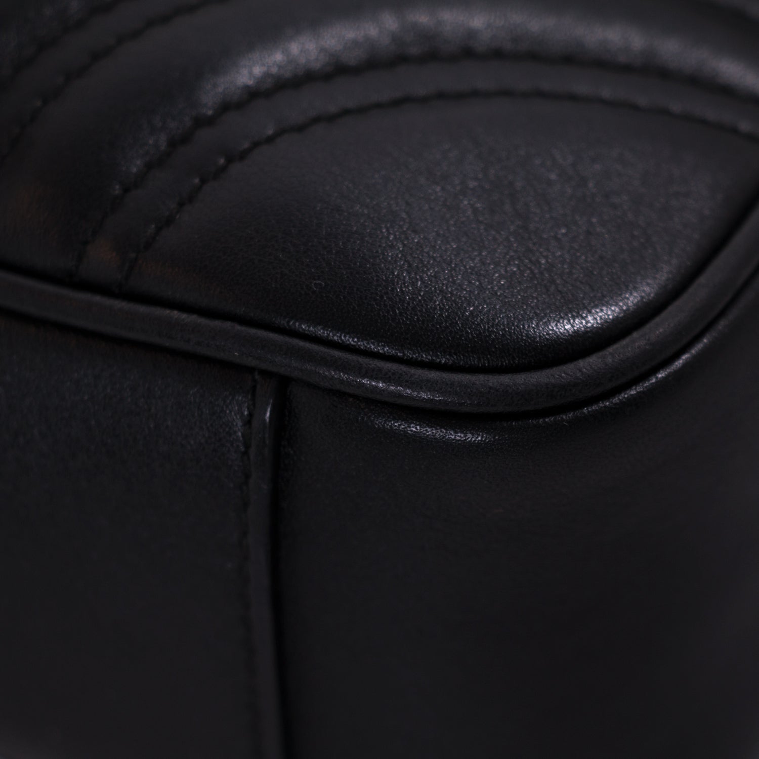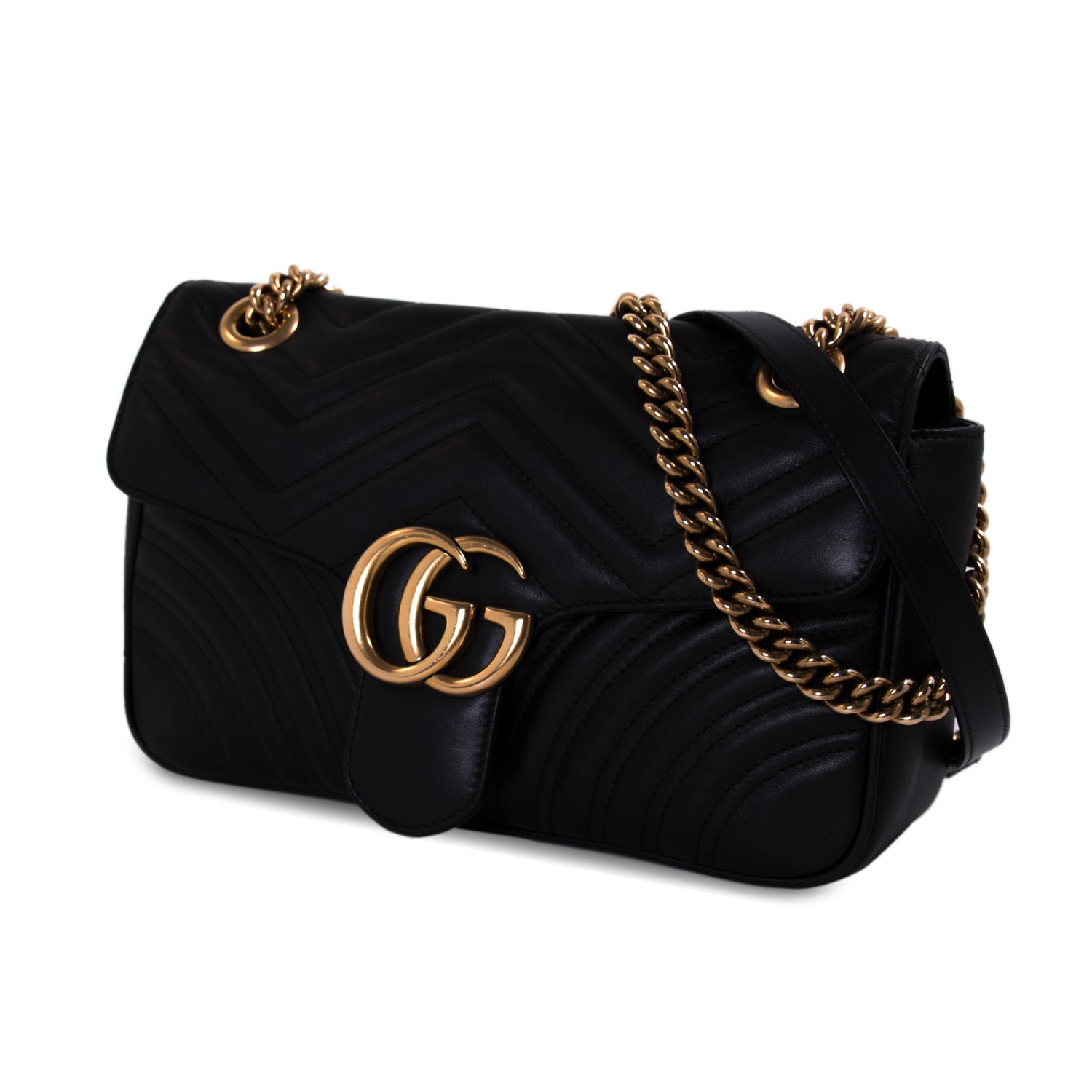 Details: Black Quilted Chevron Leather / Gold-Tone Hardware / Chain-Link and Leather Pad Shoulder Strap / Double G Logo at Front / Micro-Fiber Suede Interior Lining / Zipper Pocket at Inside / Push Button Flap Closure at Top