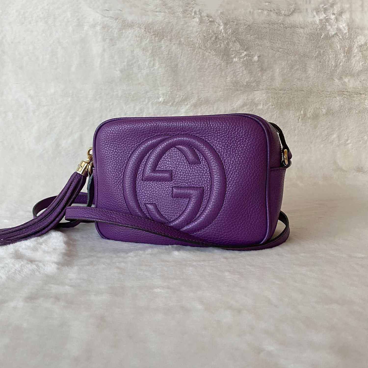 Description: Authentic Pre-Owned Gucci Soho Small Purple Leather Disco Bag