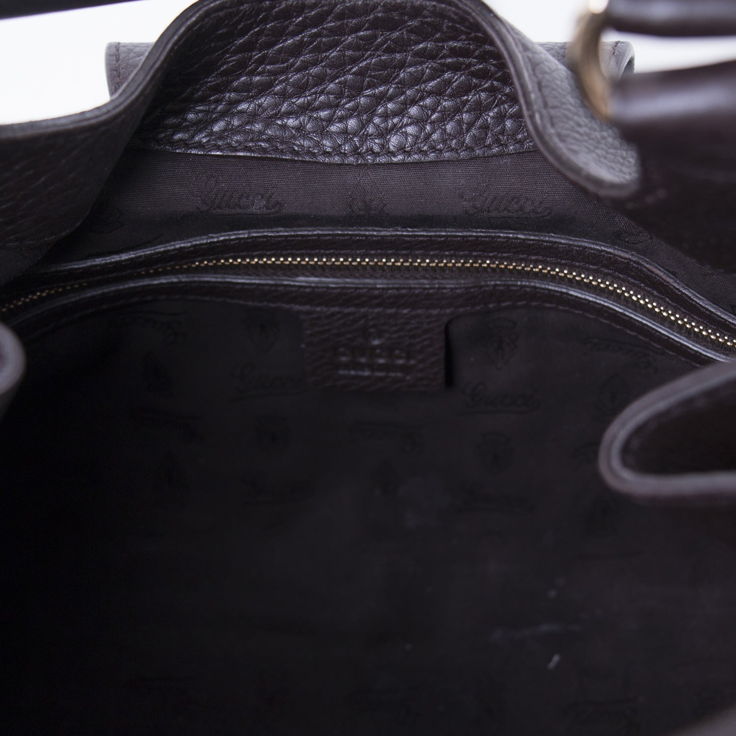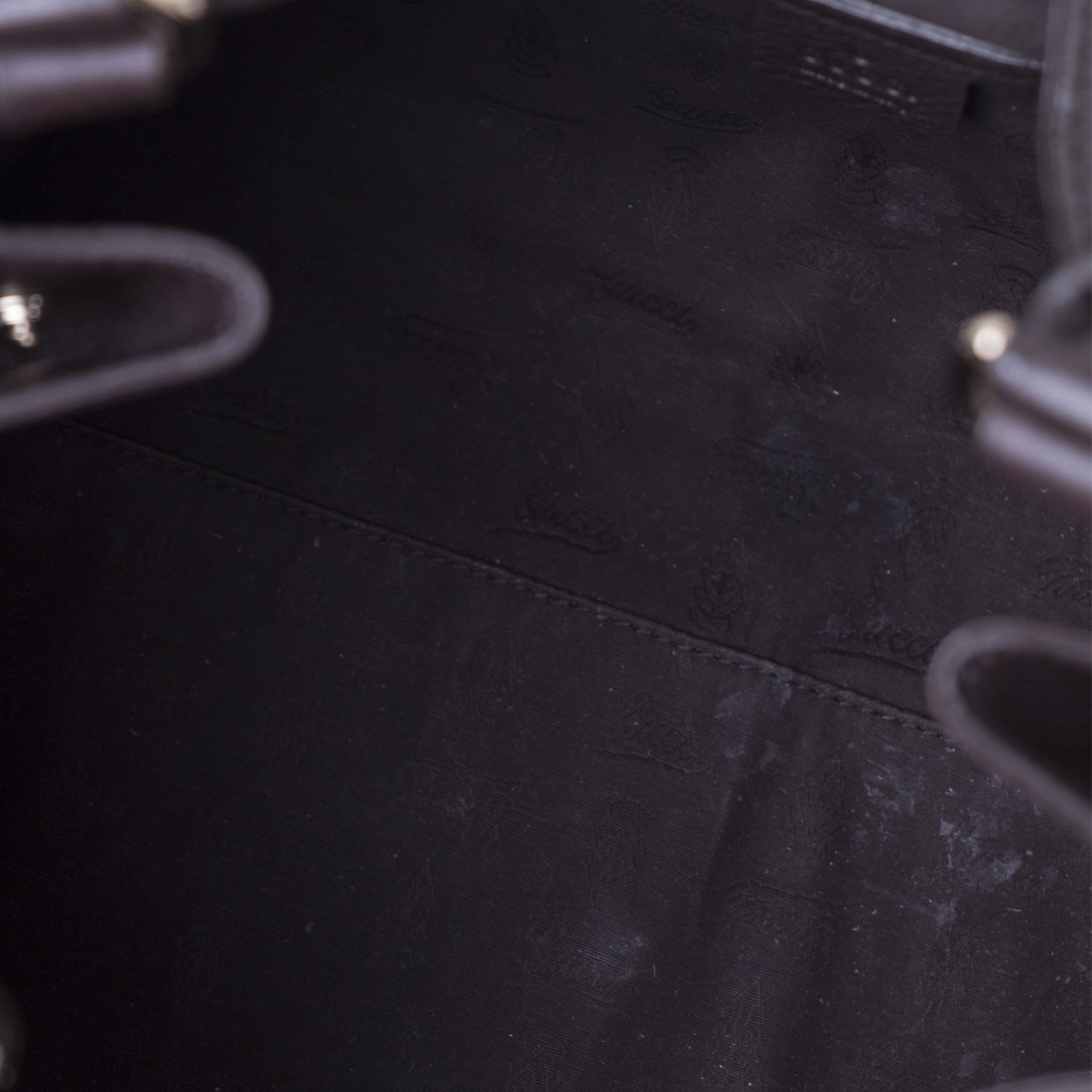 Description: Authentic Pre-Owned Gucci Web Large Brown Leather Handle Bag