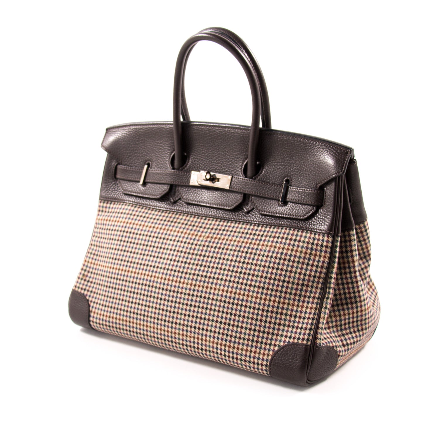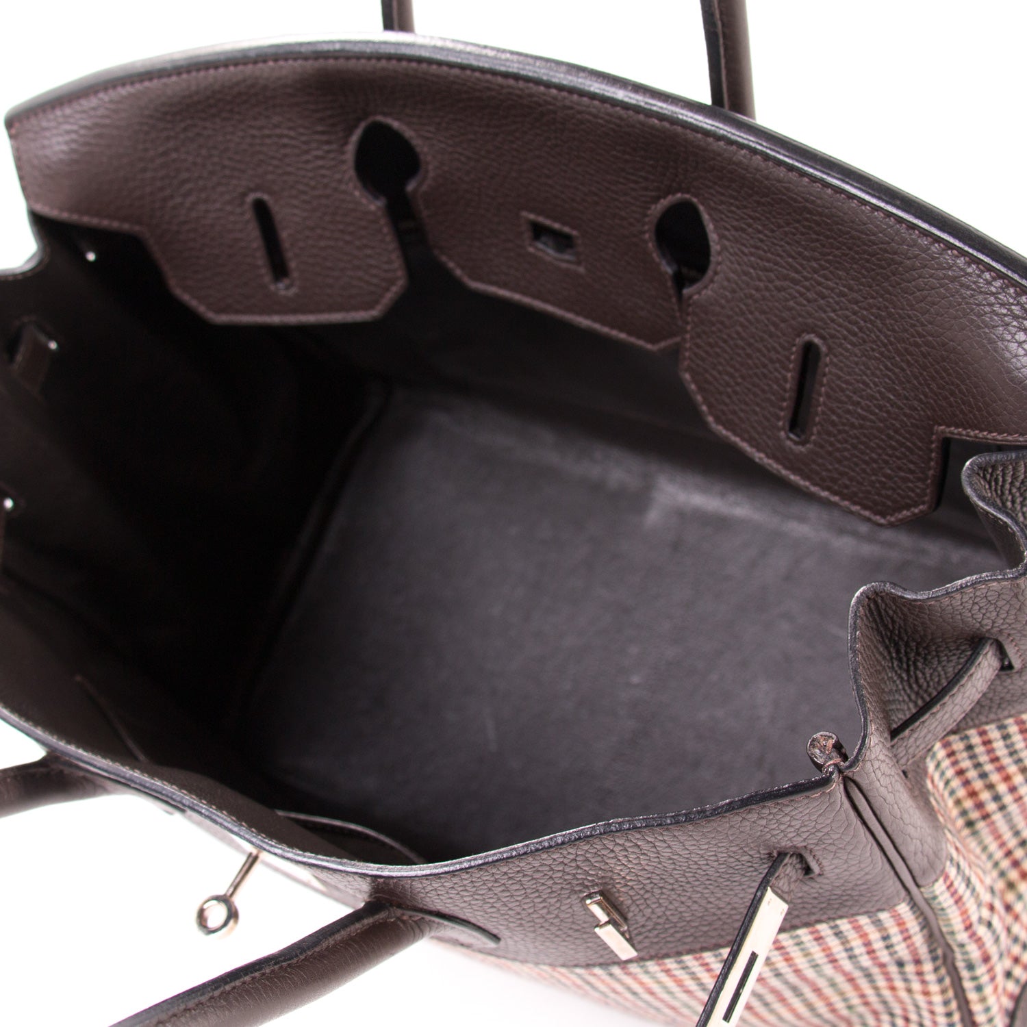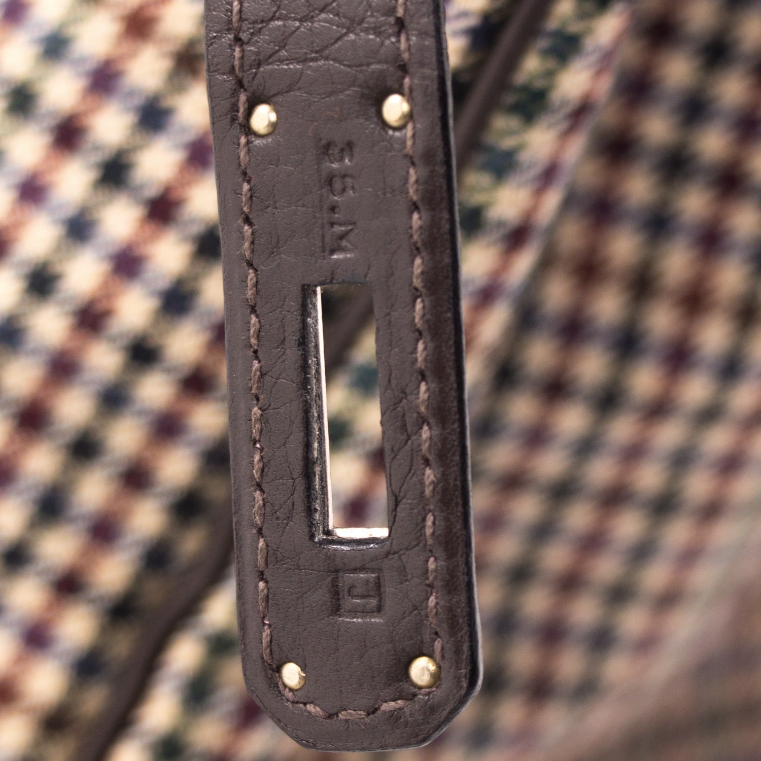 Description: Authentic Hermès Birkin 35 Taurillon Clemence Leather and Houndstooth Canvas
