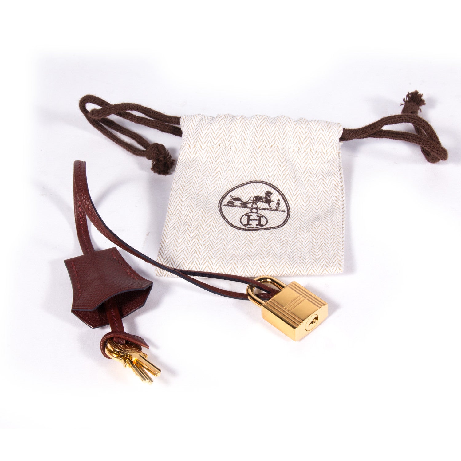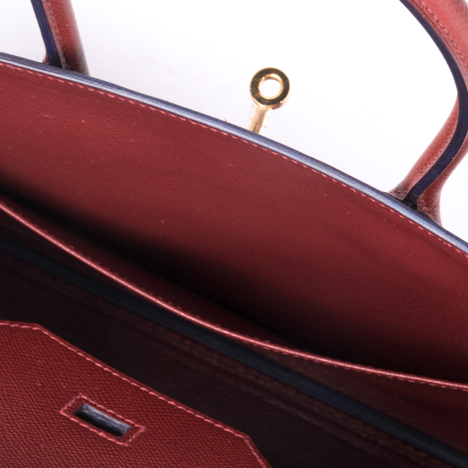 Details: Burgundy Epsom Leather / Gold Tone Hardware / Dual Top Rolled Handles / Burgundy Tonal Leather Lining / Single Large Compartment / Dual Pockets At Interior: Zip Pocket And Slit Pocket / Turn Lock Closure At Front