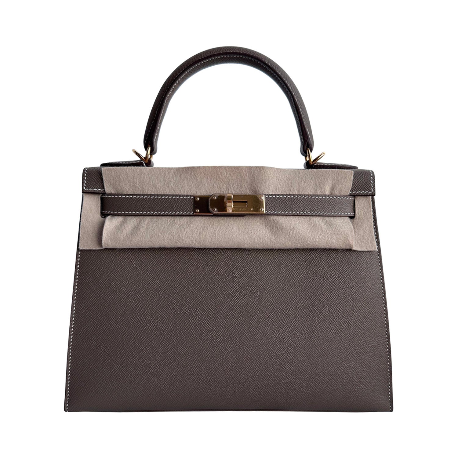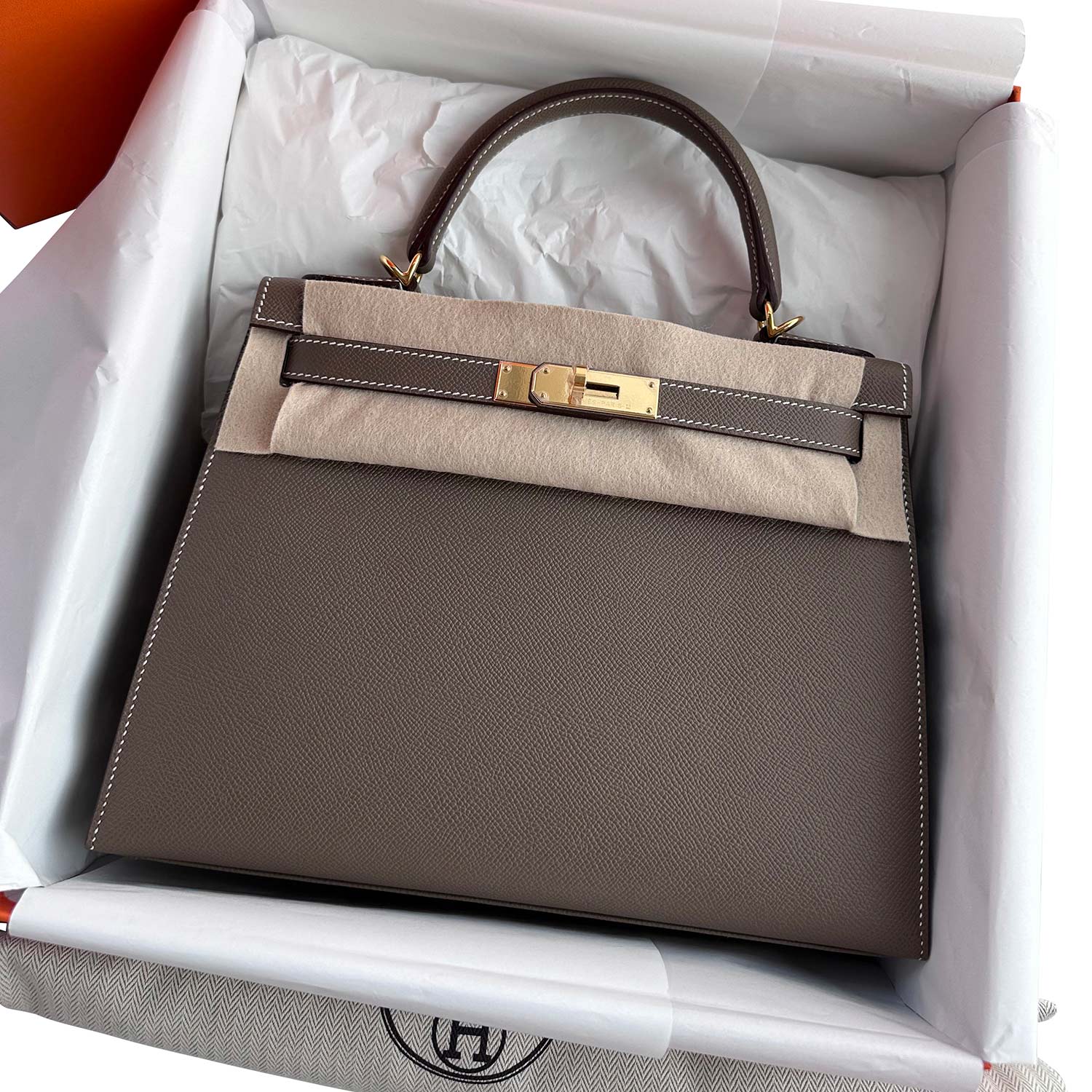 Description: Authentic New Hermès Kelly 28 Sellier Etoupe 2023 in Epsom Leather
