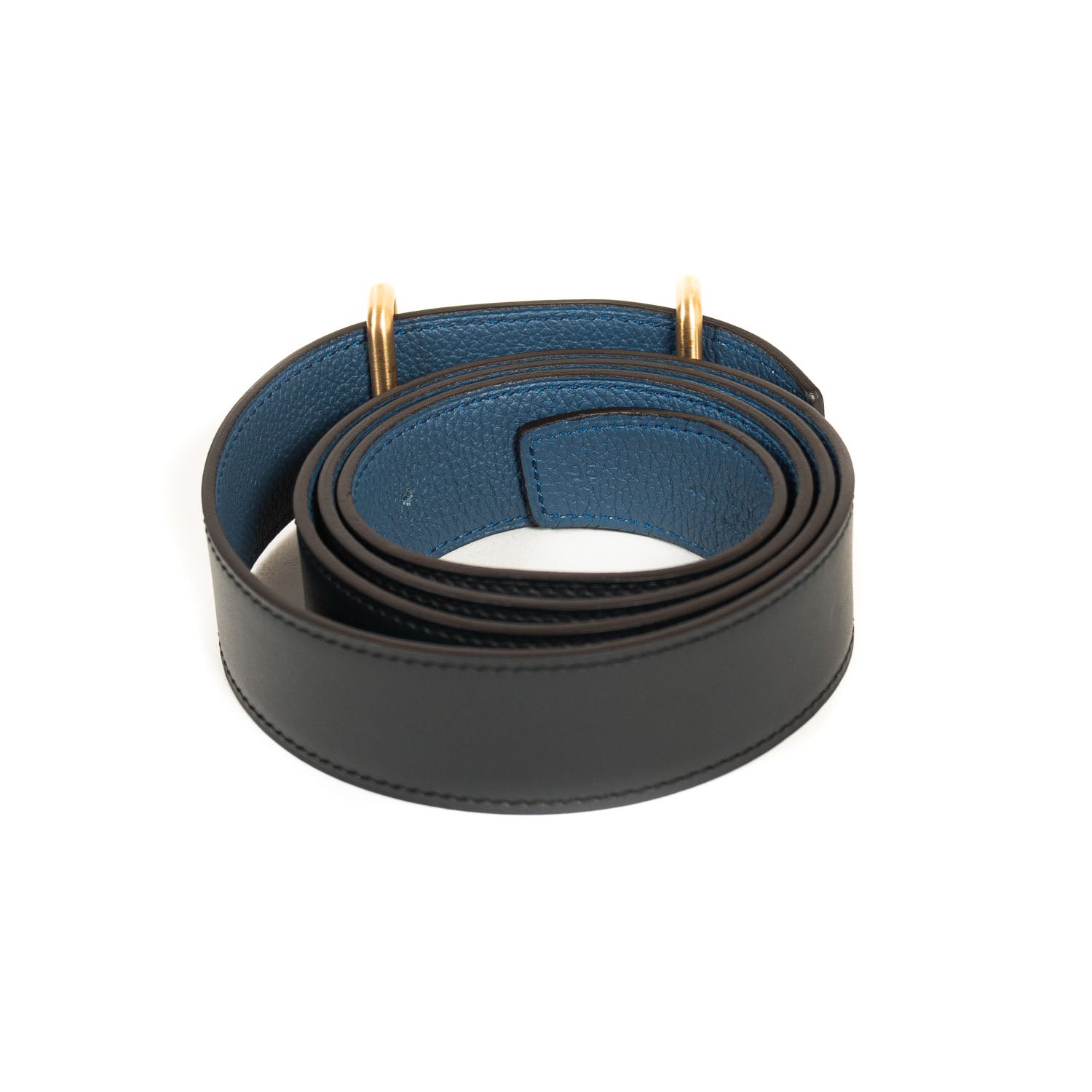 Details: Black and Blue Reversible Calfskin and Togo Leather Strap / Idem Light  Gold-Tone Buckle / Peg-In Hole Closure