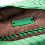 Details: Teal Intrecciato Nappa Leather / Gunmetal Hardware / Dual Top Handles / Brown Suede Interior Lining / Single Compartment / Zip Pocket and Flat Pocket / Zipper Closure at Top