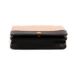 Details: Beige and Black Aged and Smooth Calfskin Leather / Gold-Tone and Brushed Metal Hardware / Chain-Link and Leather Shoulder Strap / Logo at Front Face / Red Fabric and Black Leather Lining / Dual Compartments, One with Zipper Closure / Six-Card Slots / Snap Closure at Front Flap