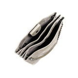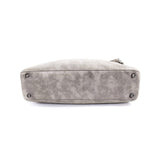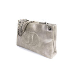 Details: Metallic Grey Leather / Silver-Tone Hardware / Dual Rolled Chain-Link and Leather Shoulder Strap / Stitched Embossed Logo at Front / Three Compartments Separated with Three Pockets