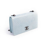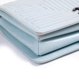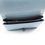 Details: Light Blue Aged Calfskin Leather / Black-Tone Hardware / Chain-Link Shoulder Strap with Leather Pad / Grey Fabric Lining / Dual Compartments with Zipper Pocket at Inside / Turn Lock Closure at Front Flap.