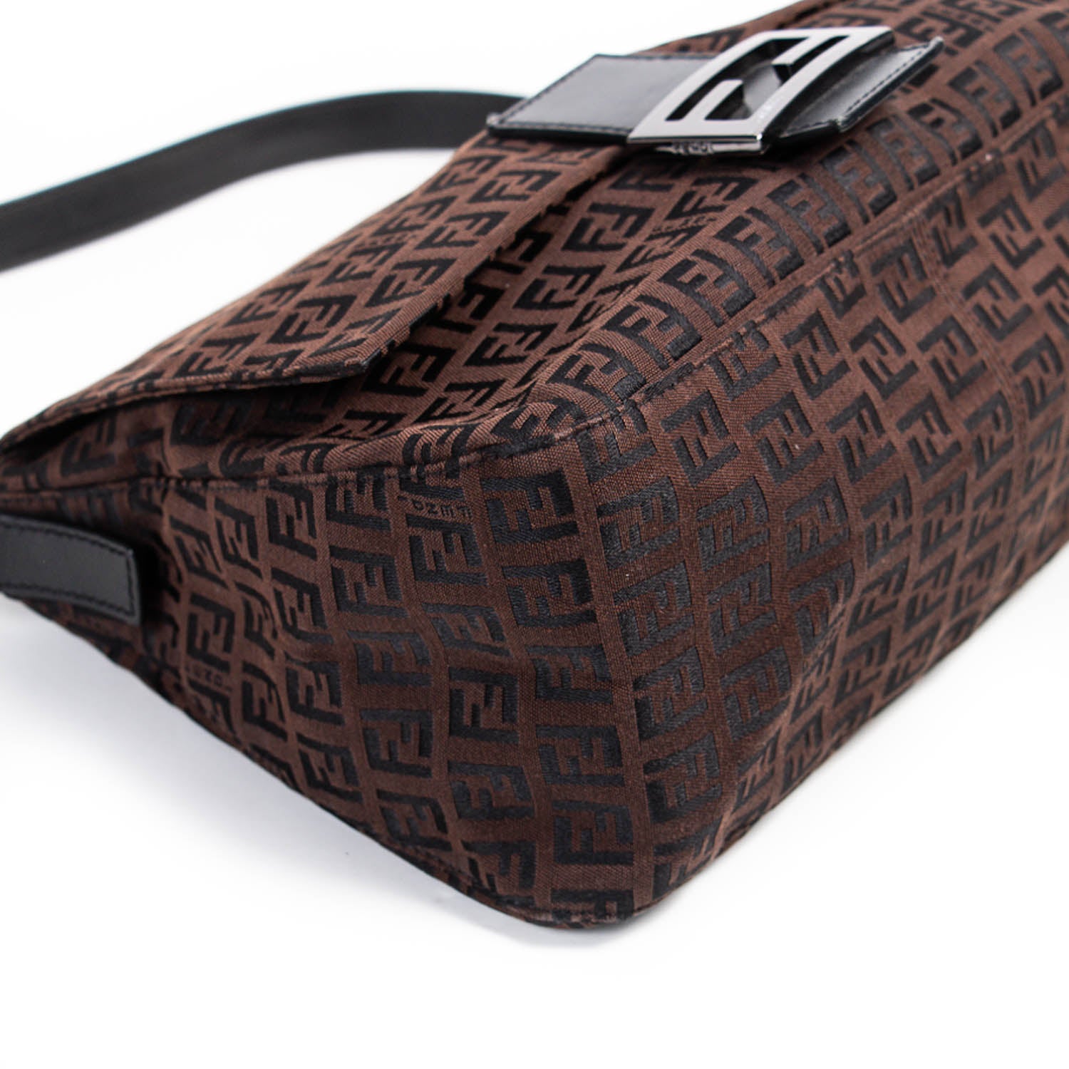 Details: Brown Zucca Canvas / Silver-Tone Hardware / Black Leather Adjustable Shoulder Strap / Brown Fabric Interior Lining / Single Pocket at Interior Wall / Snap Closure at Front