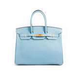 Description: Authentic Pre-Owned Hermès Birkin 35 Ciel Clemence Leather