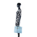 Details: Ciel Clemence Leather / Gold-Tone Hardware / Dual Rolled Handles / Protective Feet at Base / White Stitching Throughout / Blue Leather Interior Lining / Zipper and Flat Pocket at Inside / Pull-Through Closure at Front Flap with Turn-Lock