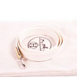Details: Jaune Poussin Clemence Leather / Palladium Hardware / White Shoulder Strap / Large Perforated H Icon In Circle At Front / Snap Closure at Back