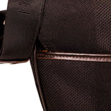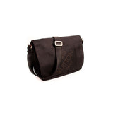 Details: Black Fabric Canvas / Silver Tone Hardware / Adjustable Shoulder Strap / Leather Trim / Exterior Zip Pocket at Back / Single Compartment / Dual Slit Pockets at Interior / Magnetic Snap Closure at Front Flap / Embossed Logo at Front