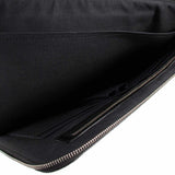 Details: Black and Blue Coated Canvas / Silver Tone Hardware / Zipper Pocket at Front / 3 Compartments, One with Zipper Closure / 4 Flat Pockets, 2 Pen Pockets / Zip-Around Closure