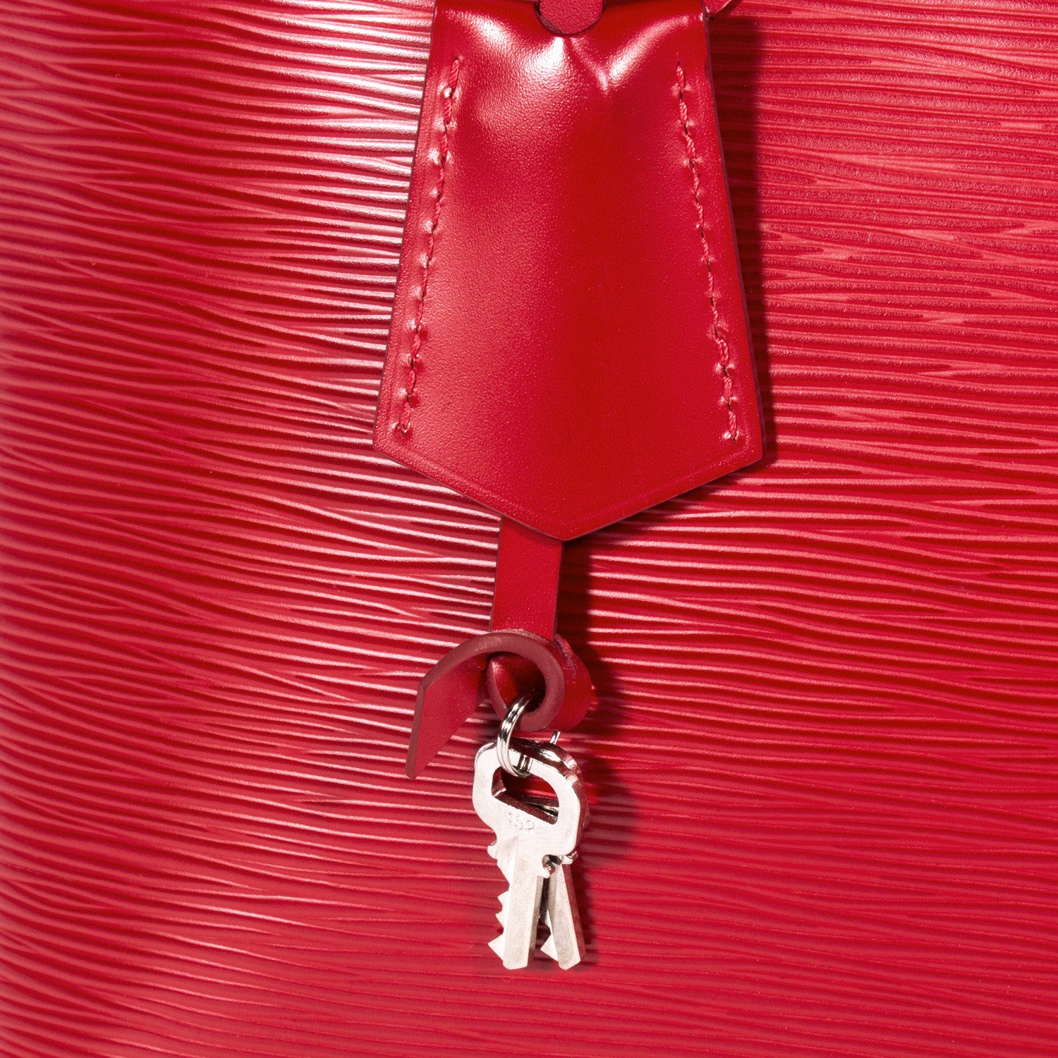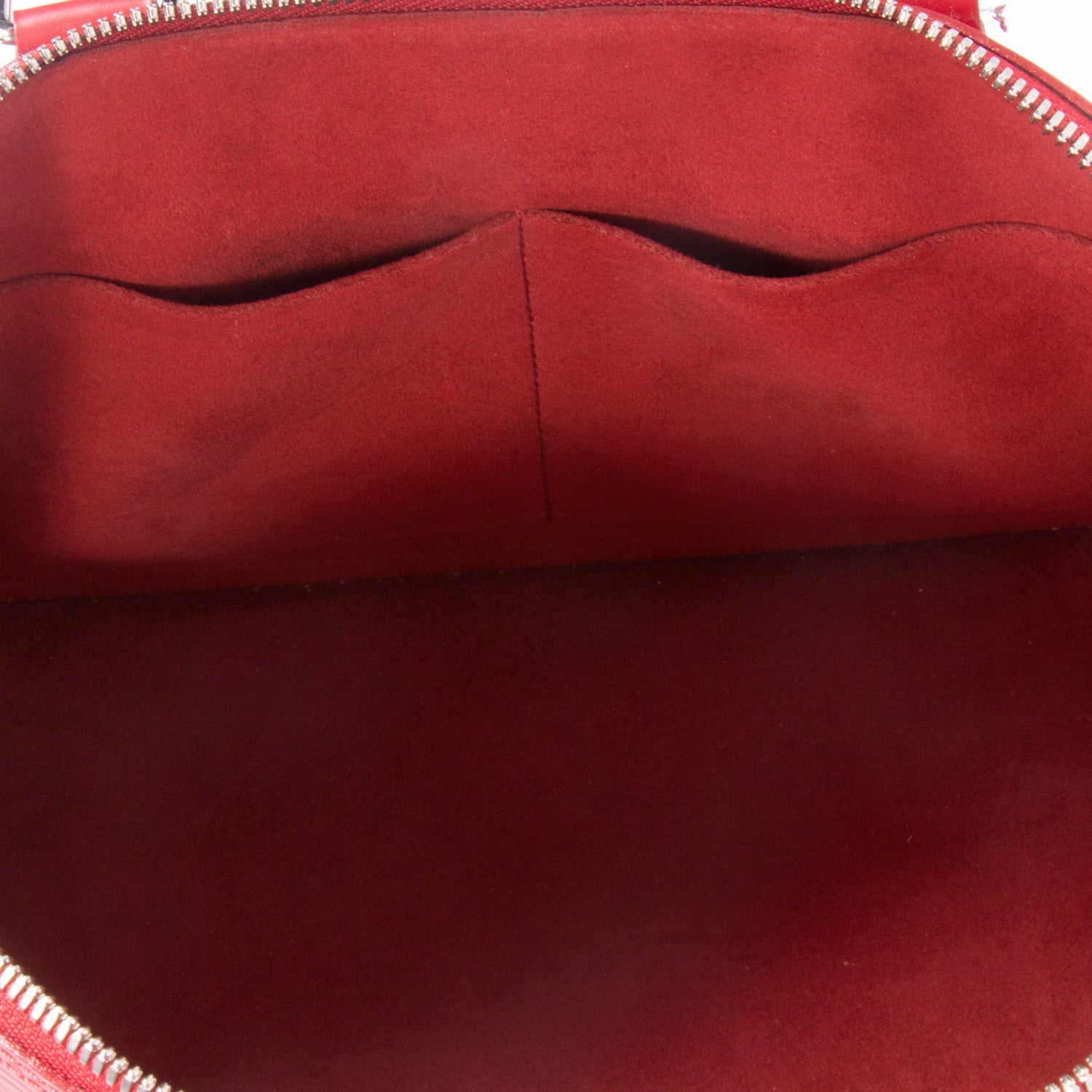 Details: Permanganate Red Epi Leather / Sliver Tone Hardware / Dual Rolled Top Handles / Red Tonal Alcantara Interior Lining / Dual Pockets At Interior Wall / Four Studs At Base / Zip Closure At Top