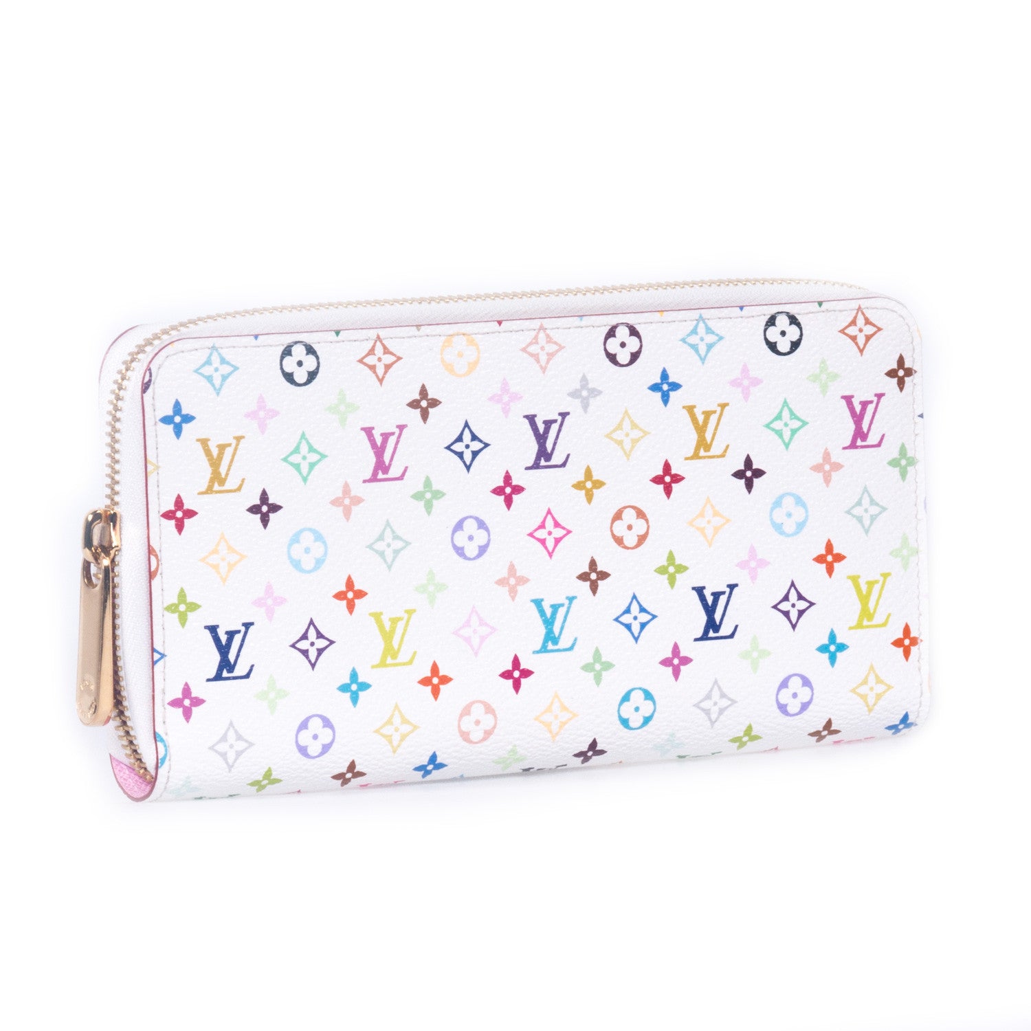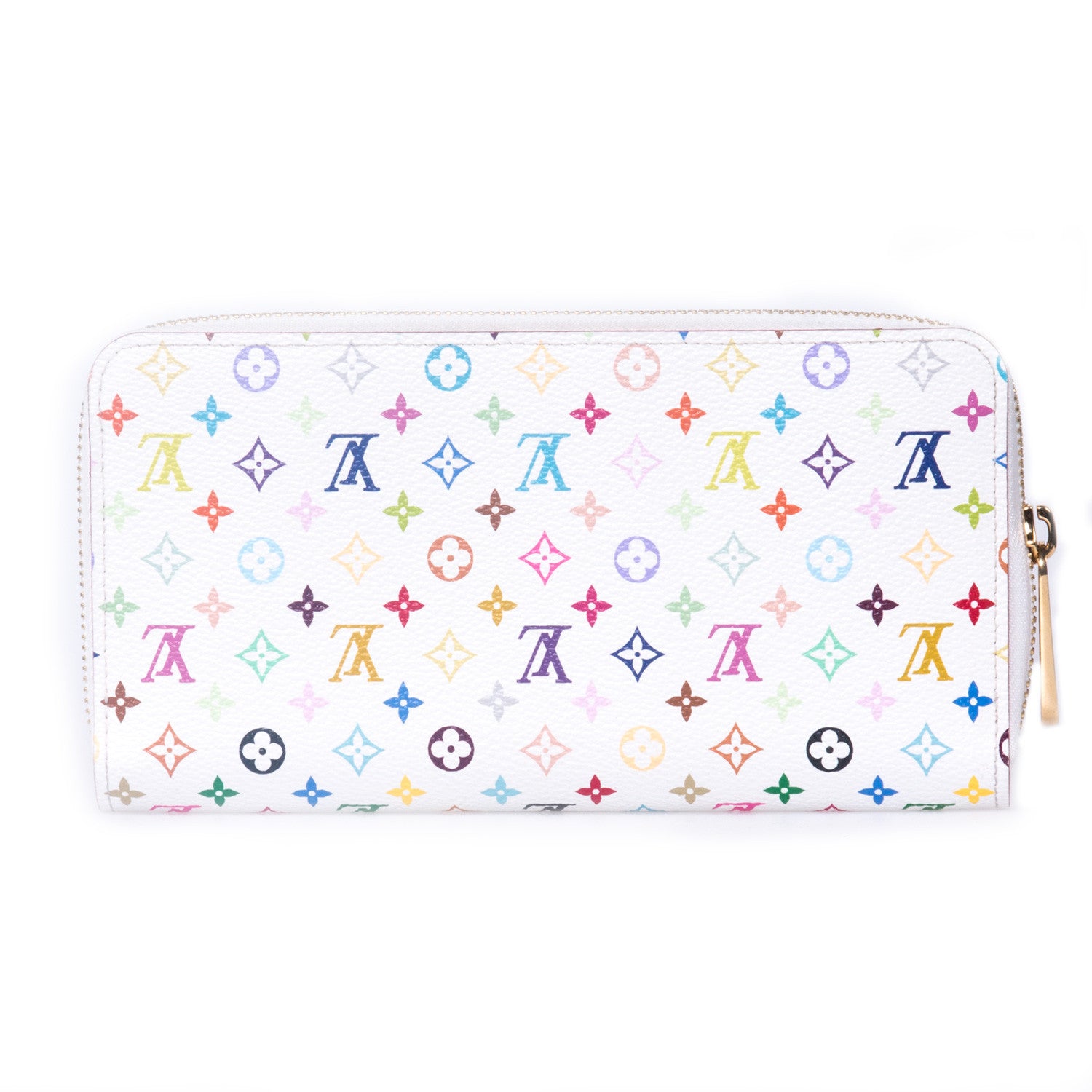 Details: From Takashi Murakami Limited Edition Collection / White Multicolor Monogram Coated Canvas / Brass Hardware / Inside Pink Leather / Gold Tone Zipper / Six Bill Compartment / Eight Card Slots / Single Zipper Compartment