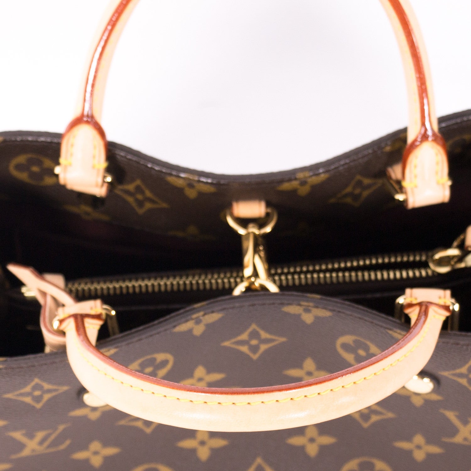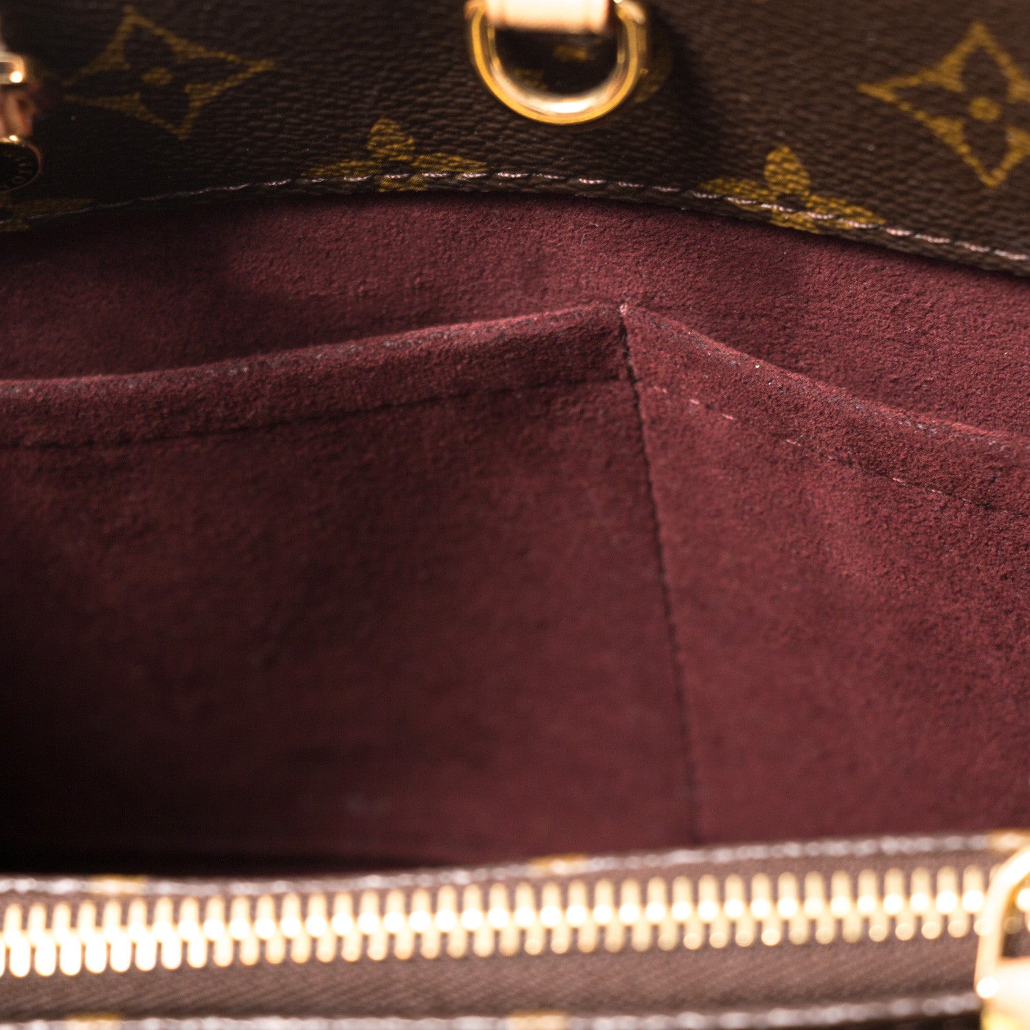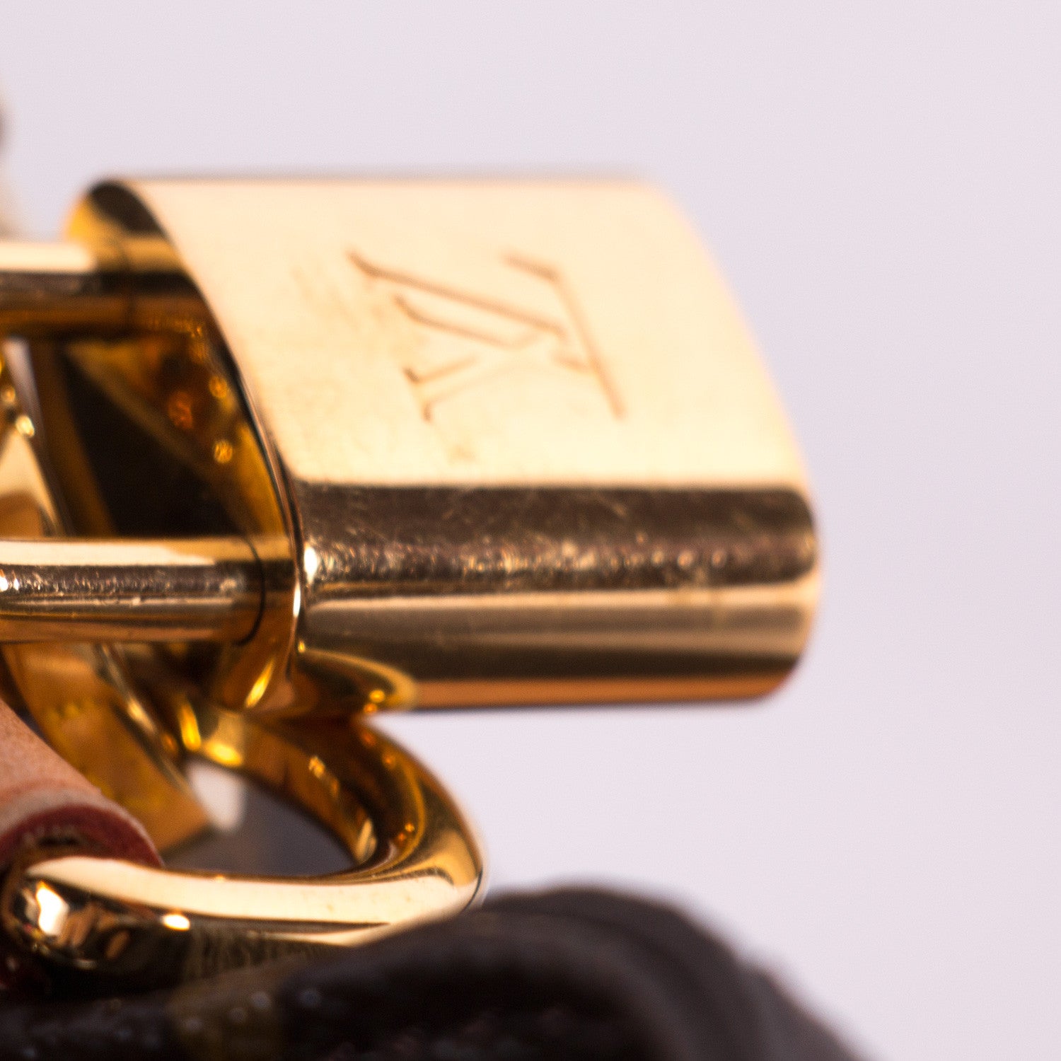 Details: Brown And Tan Monogram Coated Canvas / Natural Cowhide Tan Vachetta Leather Trim / Golden Brass Hardware / Dual Rolled Handles / Detachable Shoulder Strap / Burgundy Alcantara Interior Lining / One Central Zippered Compartment With Padlock / Dual Wide Compartments / One Double BB Pocket / Single Flat Pocket / Protective Studs At Base