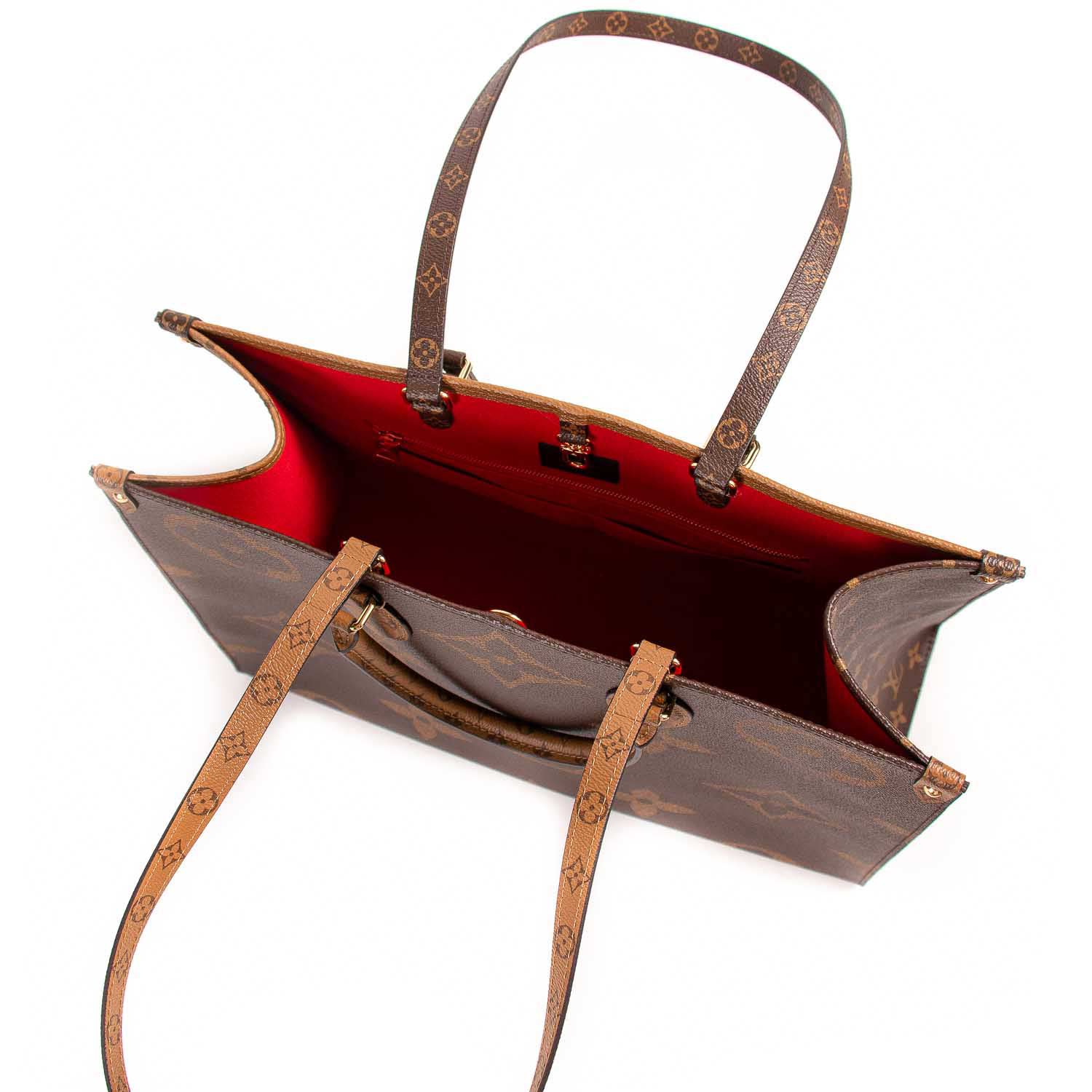 Details: Brown Monogram, Monogram Inverse and Monogram Giant Coated Canvas / Gold-Tone Hardware / Dual Rolled Handles and Shoulder Straps / Red Fabric Coated Canvas / Dual Flat Pocket and One Zipper Pocket at Inside / Lobster Lock at Top