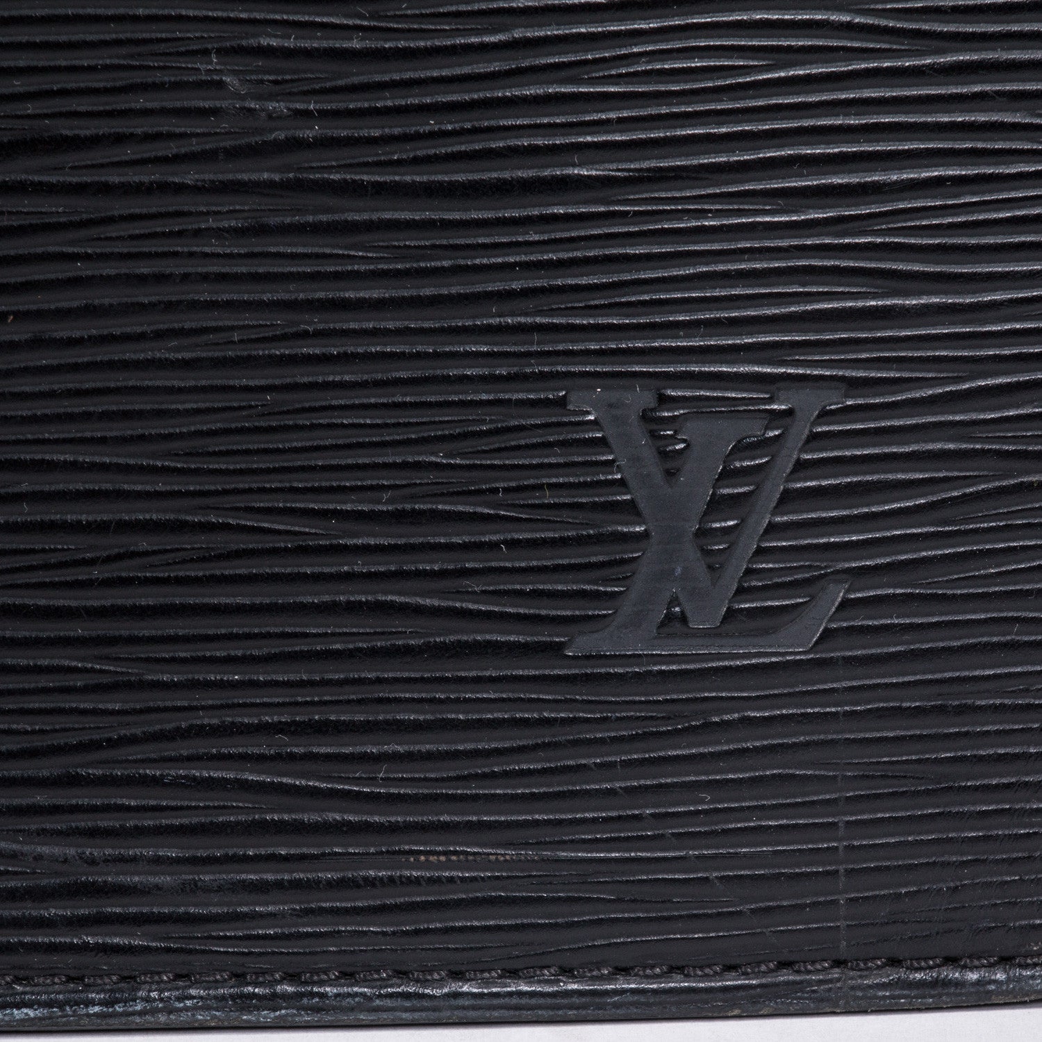 Details: Black Epi Leather / Single Leather Handle / Three Large Compartments At Interior / Dual Phone Pockets At Center Wall / Exterior Slit Pocket At Back / Gold-Tone Hardware / S-lock Closure At Center Front