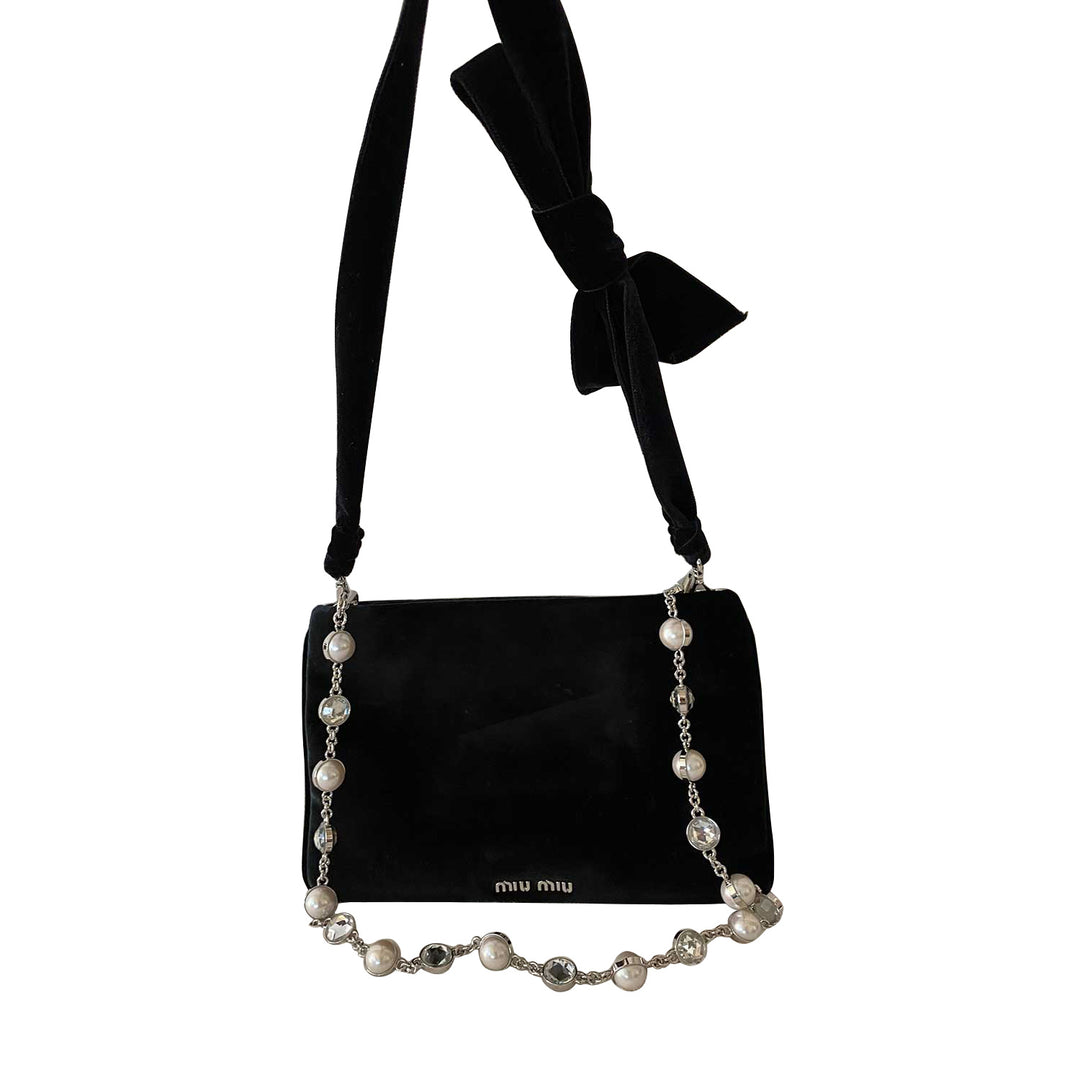 Miu Miu Crystal Pearls Velvet Shoulder Bag