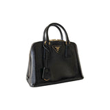 Description: Authentic Pre-Owned Small Prada Saffiano Vernice Promenade Bag in Black