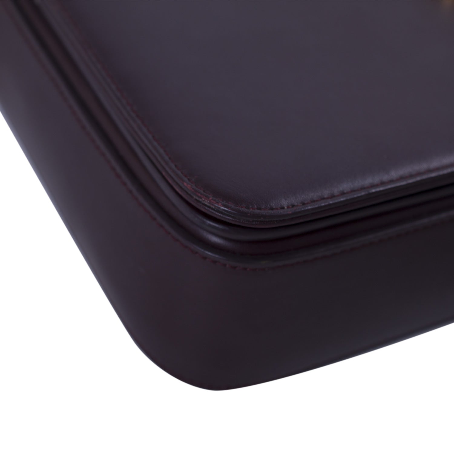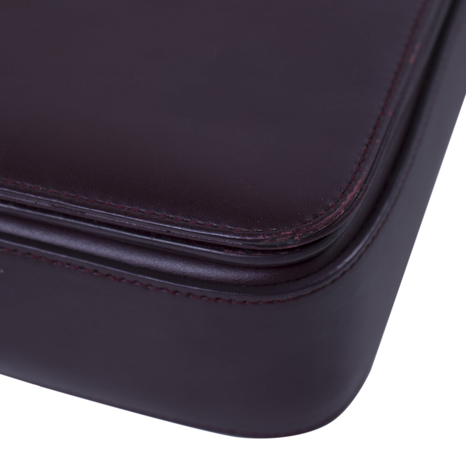 Details: Burgundy Leather / Gold-Tone Hardware / Adjustable Shoulder Strap / Logo at Front / Suede Interior Lining / Flat and Zipper Pocket at Inside / Magnetic Snap Closure at Top