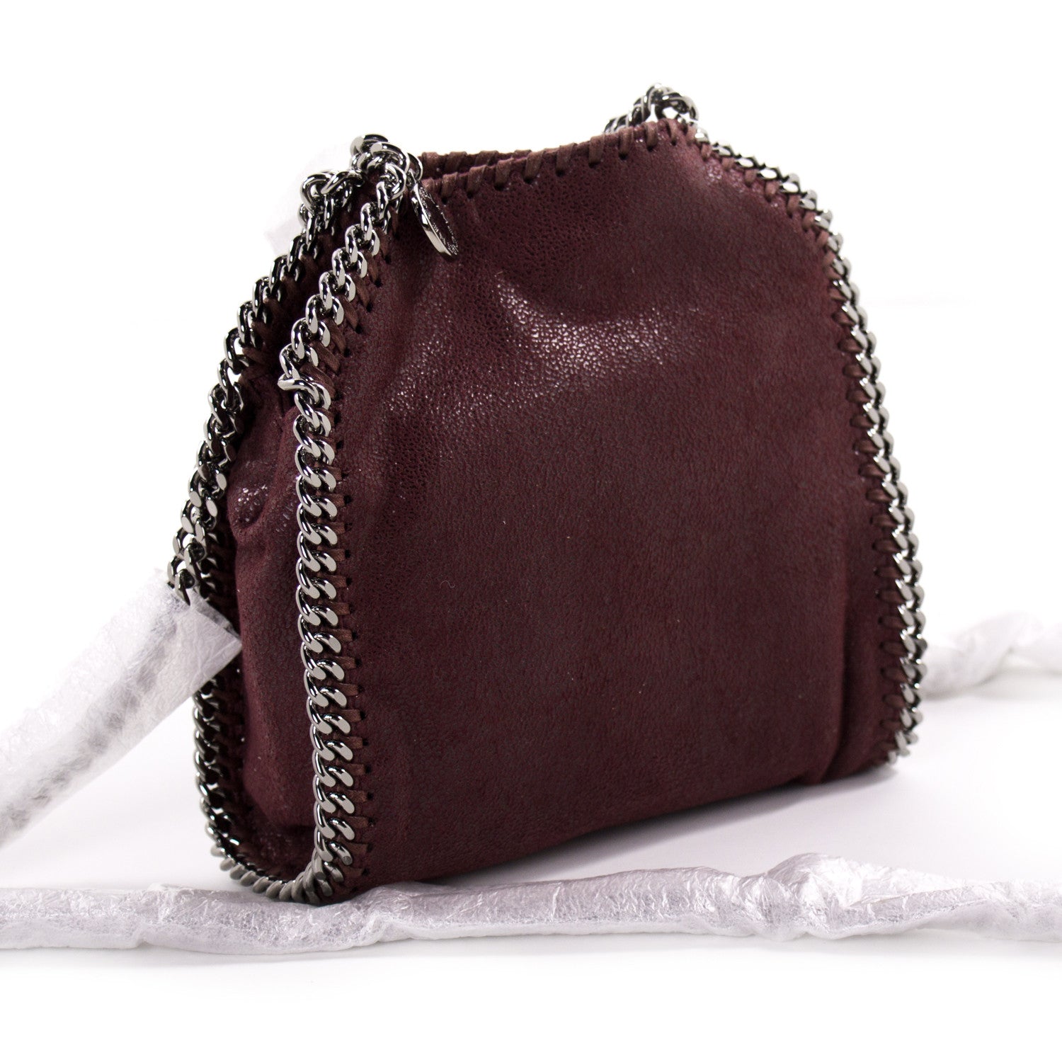 Details: Burgundy Vegan Leather / Silver-Tone Hardware / Dual Rolled Handles / Chain-Link Shoulder Strap / Fabric Interior Lining / Flat Pocket at Inside / Magnetic Snap Closure