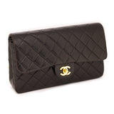 Details: Black Quilted Lambskin Leather / Gold Tone Hardware / Dual Shoulder Straps Featuring Chain-Links / Exterior Flat Pocket At Back / Black Leather Interior Lining / Dual Pockets At Interior Walls, One With Zip Closure / Zip Closure At Inside / Interlocking CC Turn-Lock Flap Closure