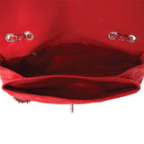 Details: Red Smooth Leather / Silver-Tone Hardware / Chain and Leather Shoulder Strap / Cannage Stitching Throughout / Flat Pocket at Exterior Back / Satin Lining / Dual Compartments, One with Zipper Pocket / Flap Closure with Turn-Lock at Front