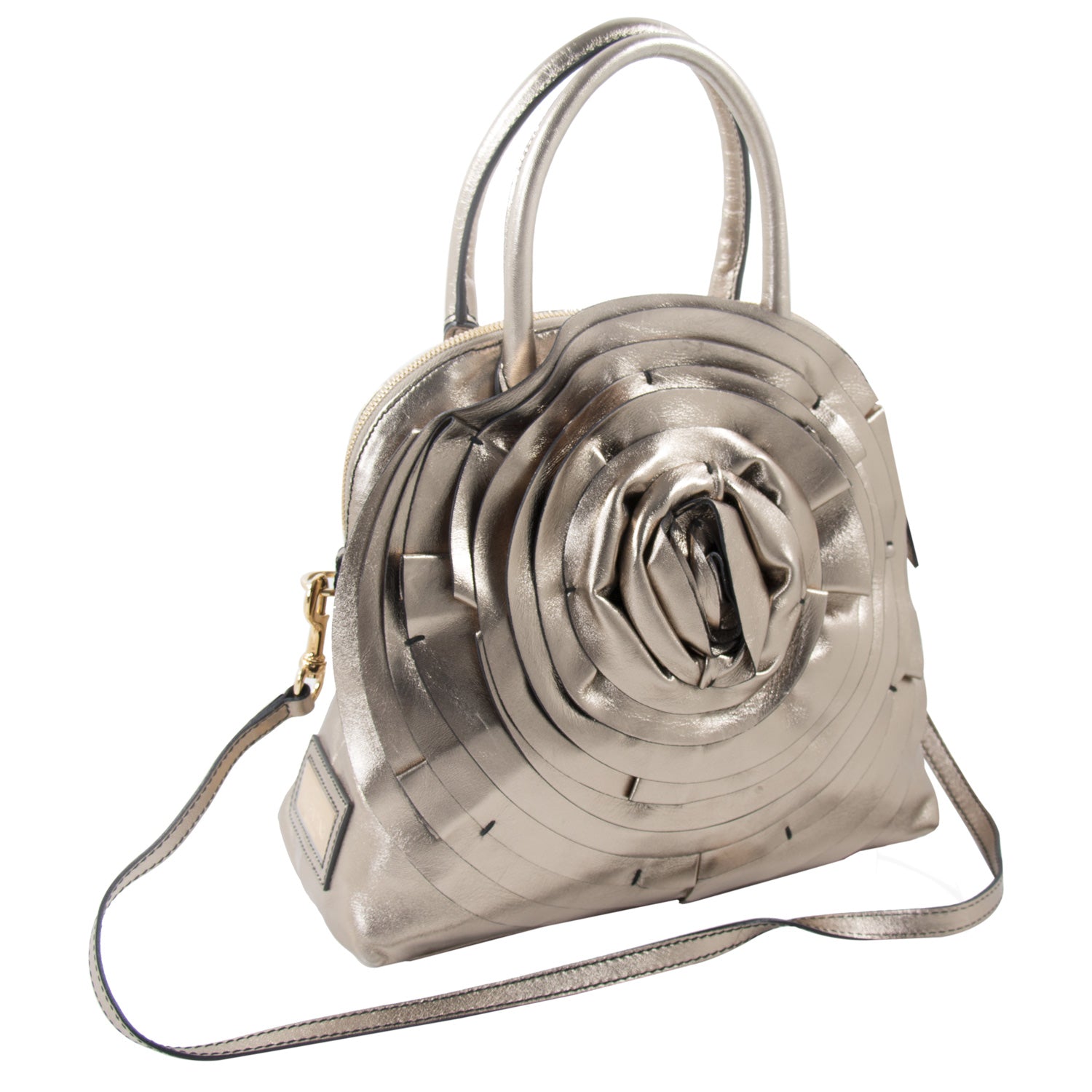 Description: Authentic Pre-Owned Valentino Metallic Bronze Leather Petale Dome Bag