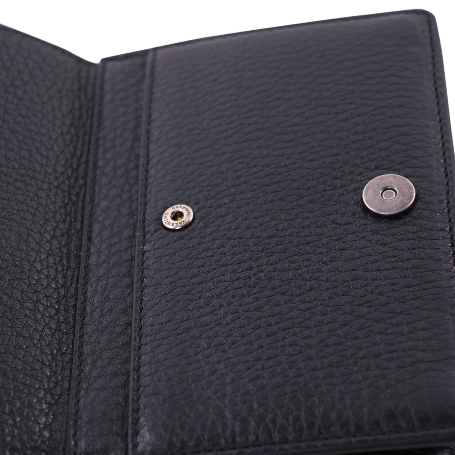 Details: Black Calf Leather / Metal Hardware / Long Chain Shoulder Strap / Blue Pearl Stud Embellishments Throughout the Front and Back / Leather and Suede Interior Lining / 3 Card Slots / One Zip Pocket / Snap Closure at Front Flap