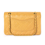 Description: Beige Lambskin Leather / Gold-Tone Hardware / Leather And Chain Link Shoulder Strap / Exterior Slip Pocket On The Reverse / Double Front Flaps / Five Interior Open Pockets With Additional Zipper Pocket / CC Logo Fitting Of Gold Tone / Turn Lock Closure
