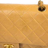 Details: Authentic Chanel Lambskin Beige Quilted Leather Classic Flap Bag