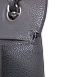 Details: Grey Caviar Leather / Silver Tone Hardware / Dual Chain-Link Leather Shoulder Strap / Grey Leather at Interior / Single Large Compartment / Flat and Zip Pocket at Inside / Turn Lock Closure at Front